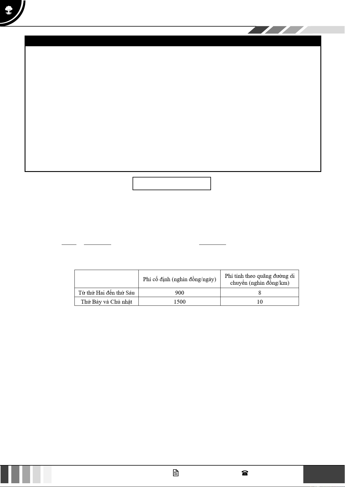 Bài tập 2:Ông An muốn thuê một chiếc ô tô (có lái xe) trong một tuần. Giá thuê xe được cho như bảng sau: