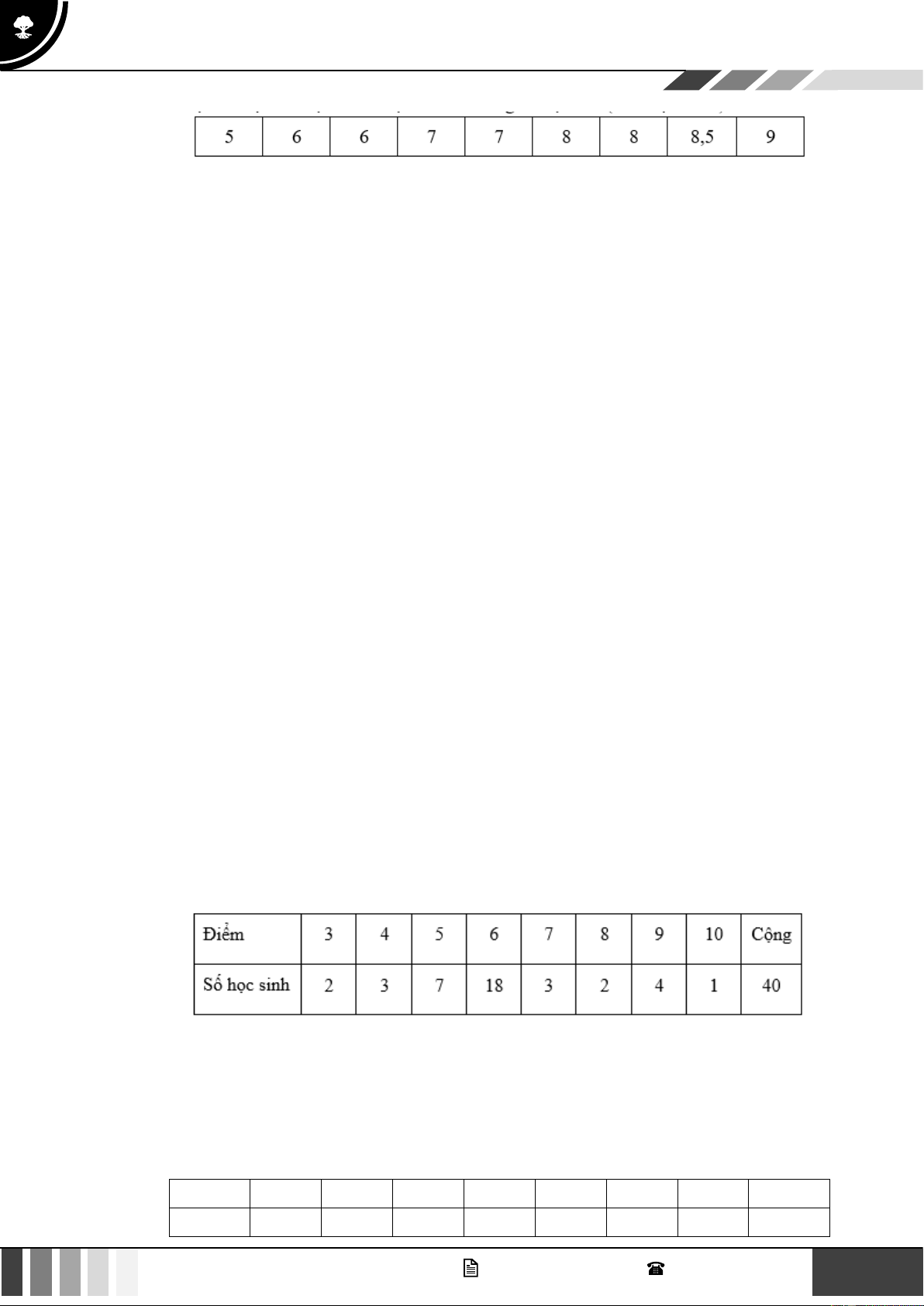 Câu 22: Một nhóm 10 học sinh tham gia một kỳ thi. Số điểm thi của 10 học sinh đó được sắp xếp từ thấp