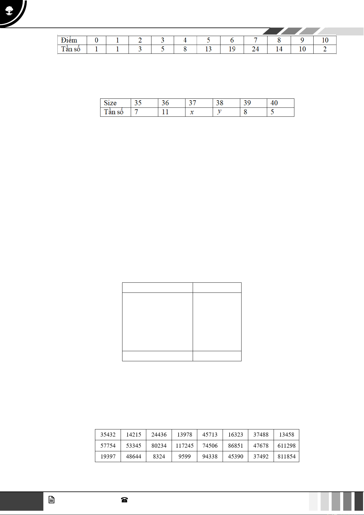 Câu 38: Khảo sát 50 khách hàng ở một shop giày dép. Số size dép mà các khách hàng thường sử dụng: