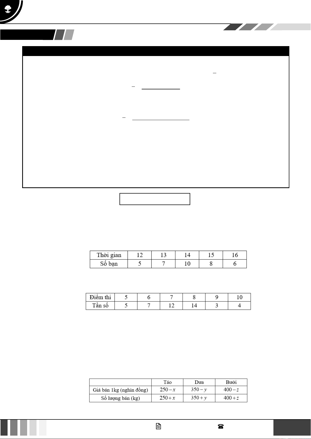 Câu 5: Giá của một số loại giày (đơn vị nghìn đồng) lần lượt là: 250 200 550 200 350 400 200 150 .