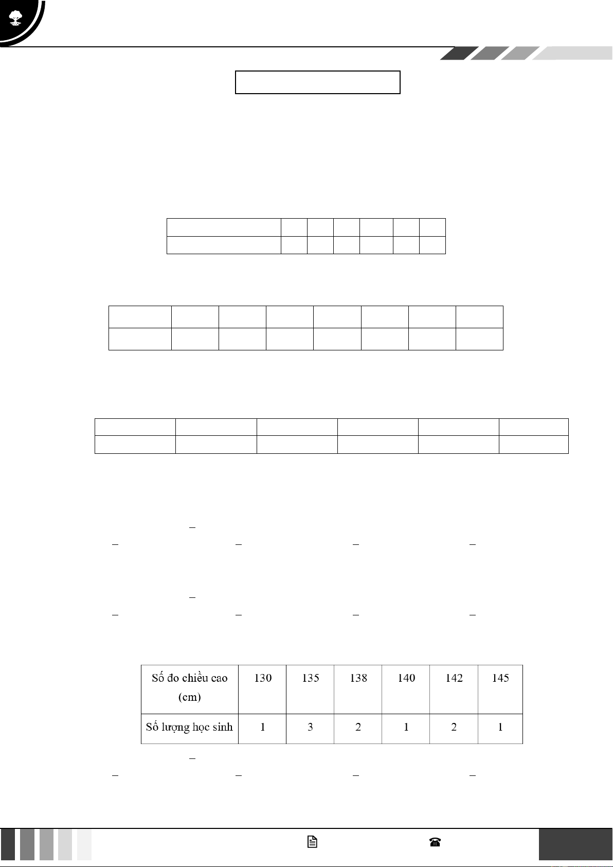 Câu 7: Sau đợt khám sức khoẻ của lớp, bạn tổ trưởng đã thống kê chiều cao các thành viên trong tổ như sau: