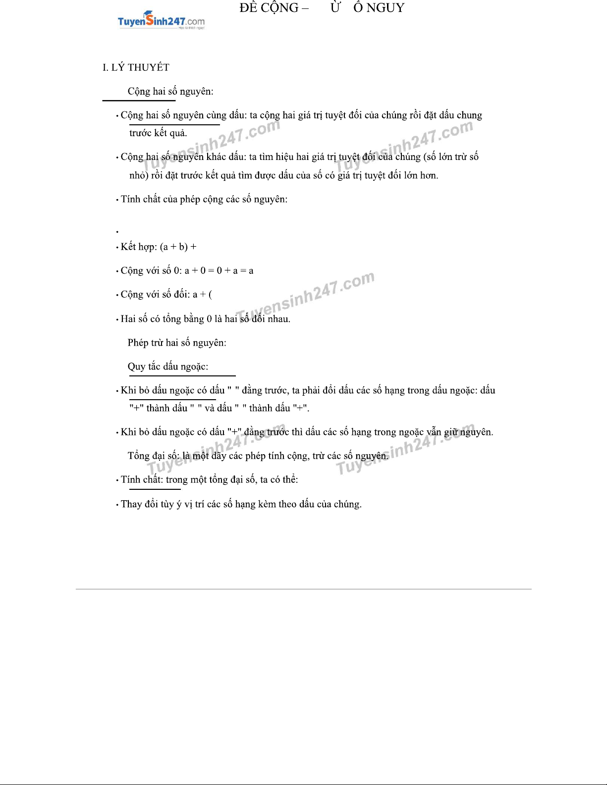 Chuyên đề Cộng - Trừ Số Nguyên và Bài Tập Thực Hành