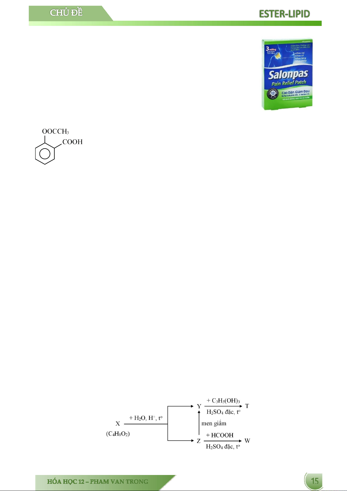 Câu 9. [CD - SGK] Cho salicylic acid (hay 2 – hydroxylbenzoic acid) phản ứng với methyl alcohol có