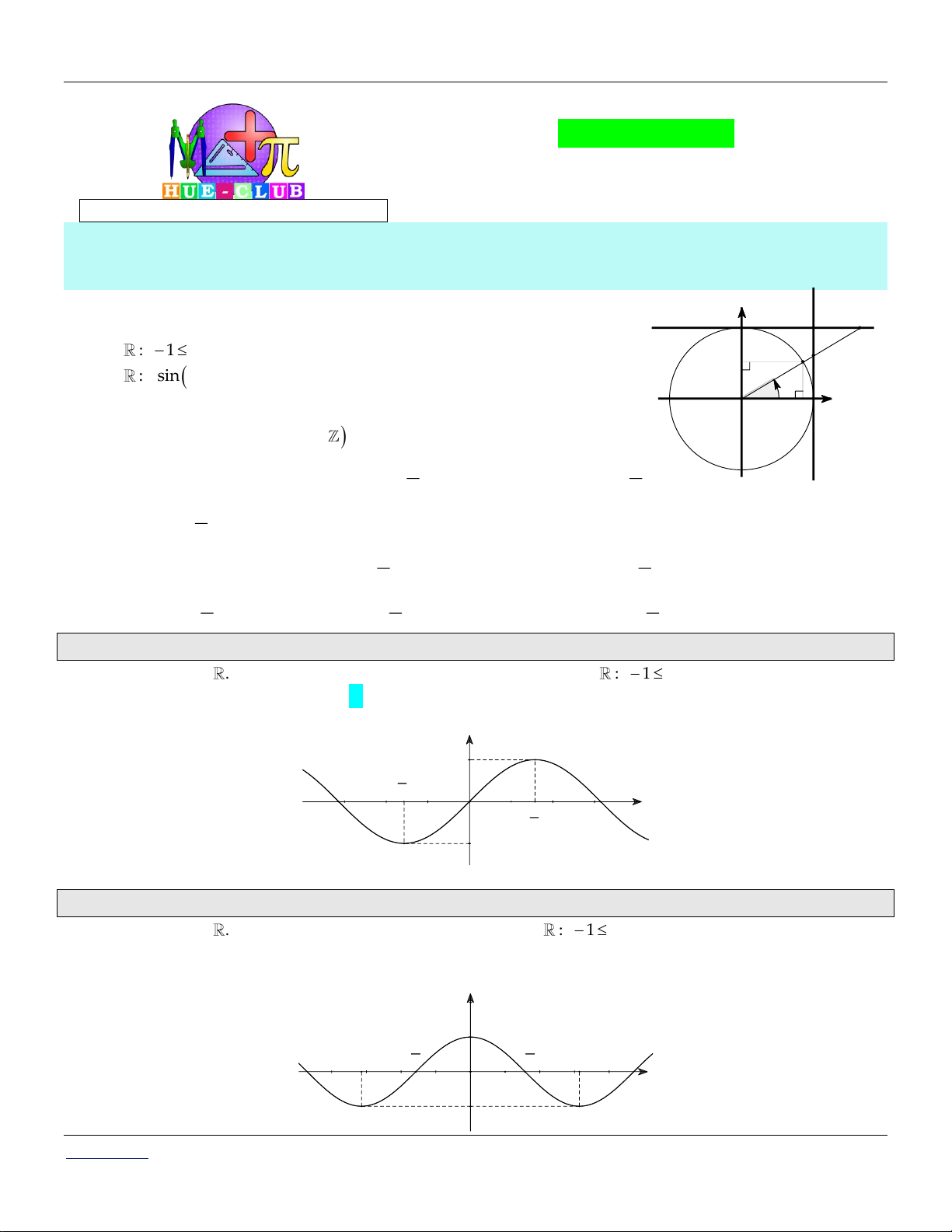 + k 11. cotx = 1 x = + k 12. cotx = −1 x = − + k 2 4 4 1. Hàm số y = sin x: * TXĐ: D = . * Tập giá trị: x