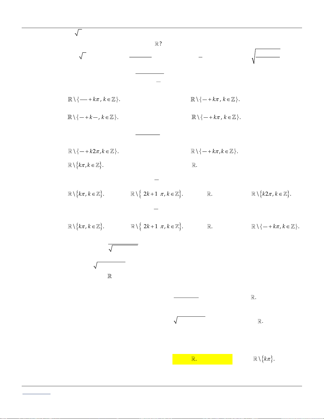 Vậy tập xác định của hàm số là D = \ + k , + ,k,m . 2 4 2 Câu 2: