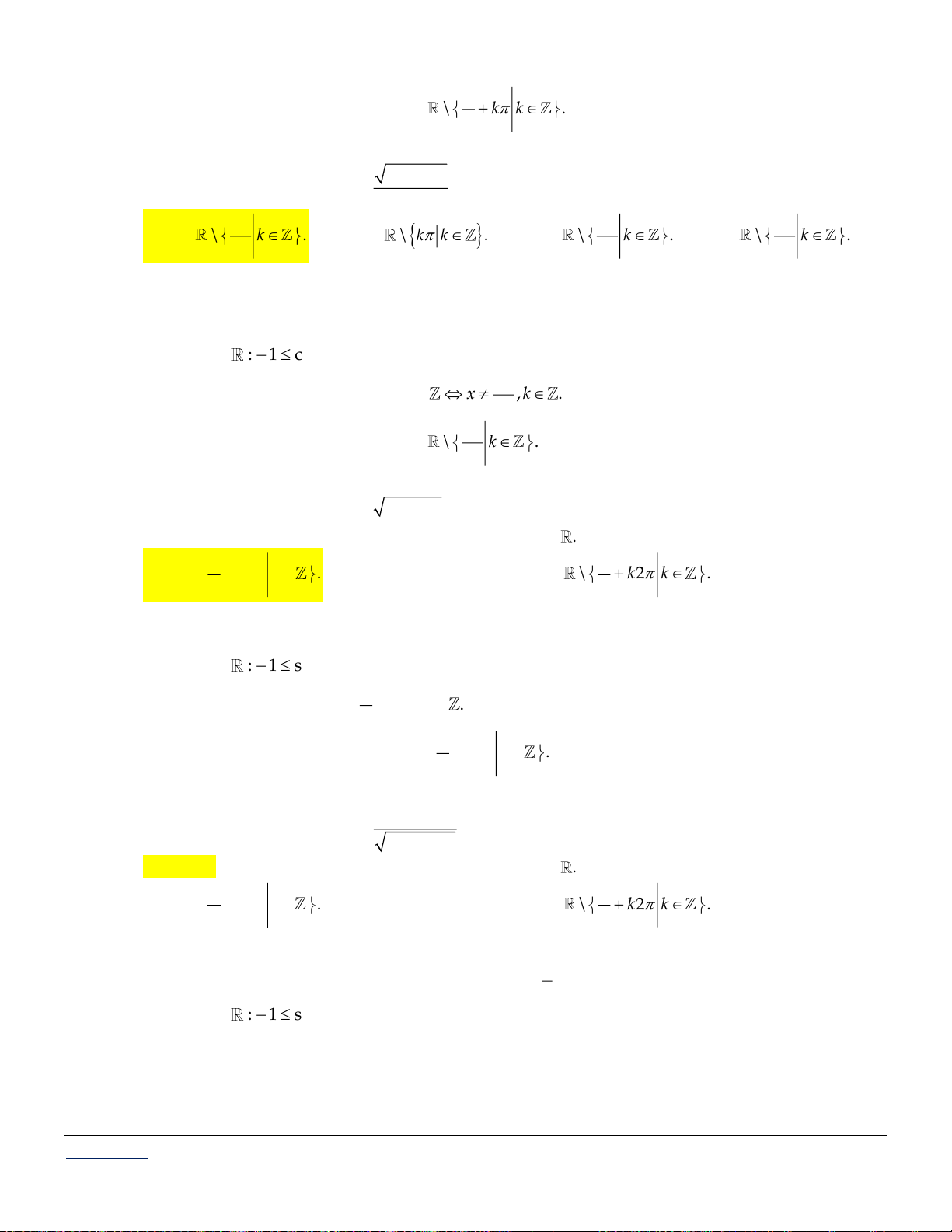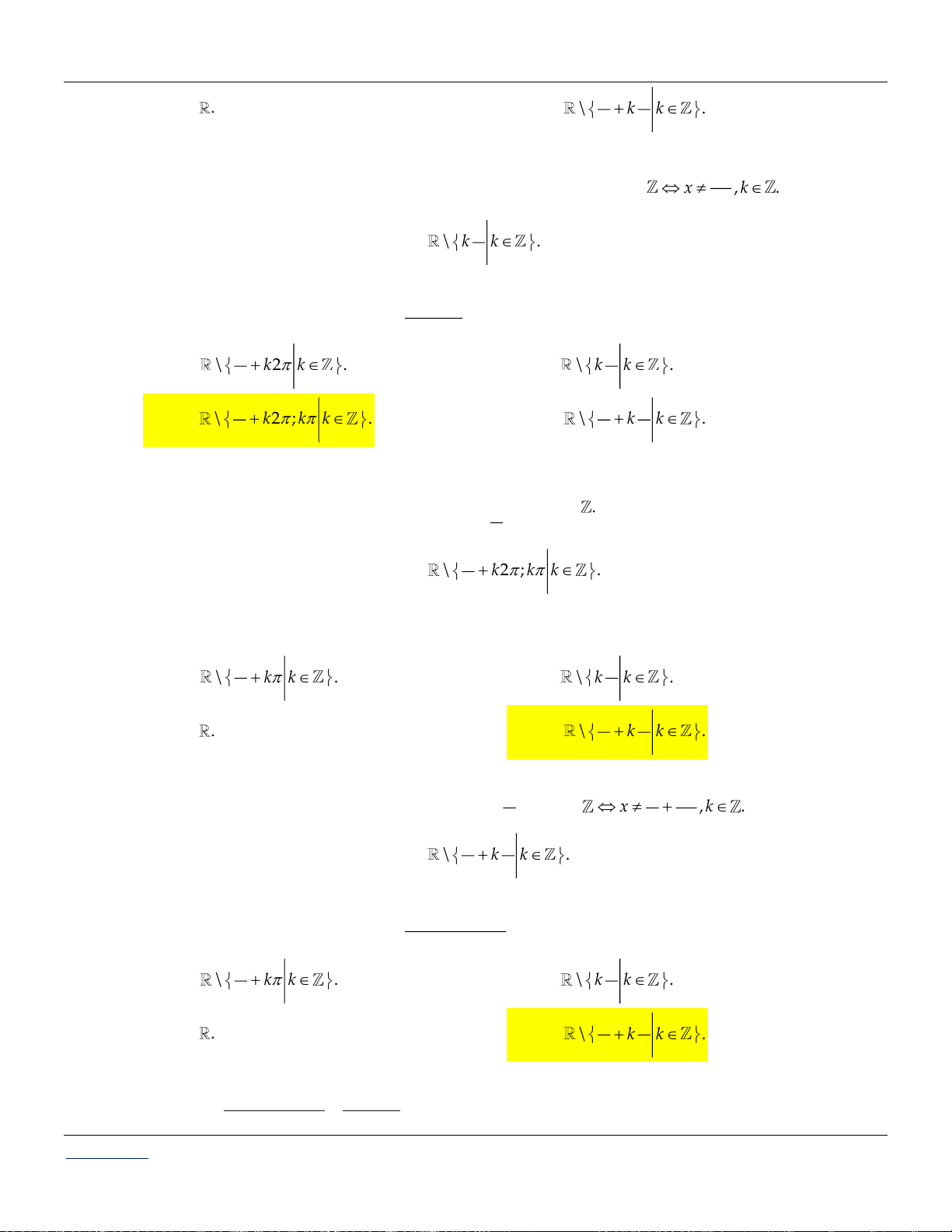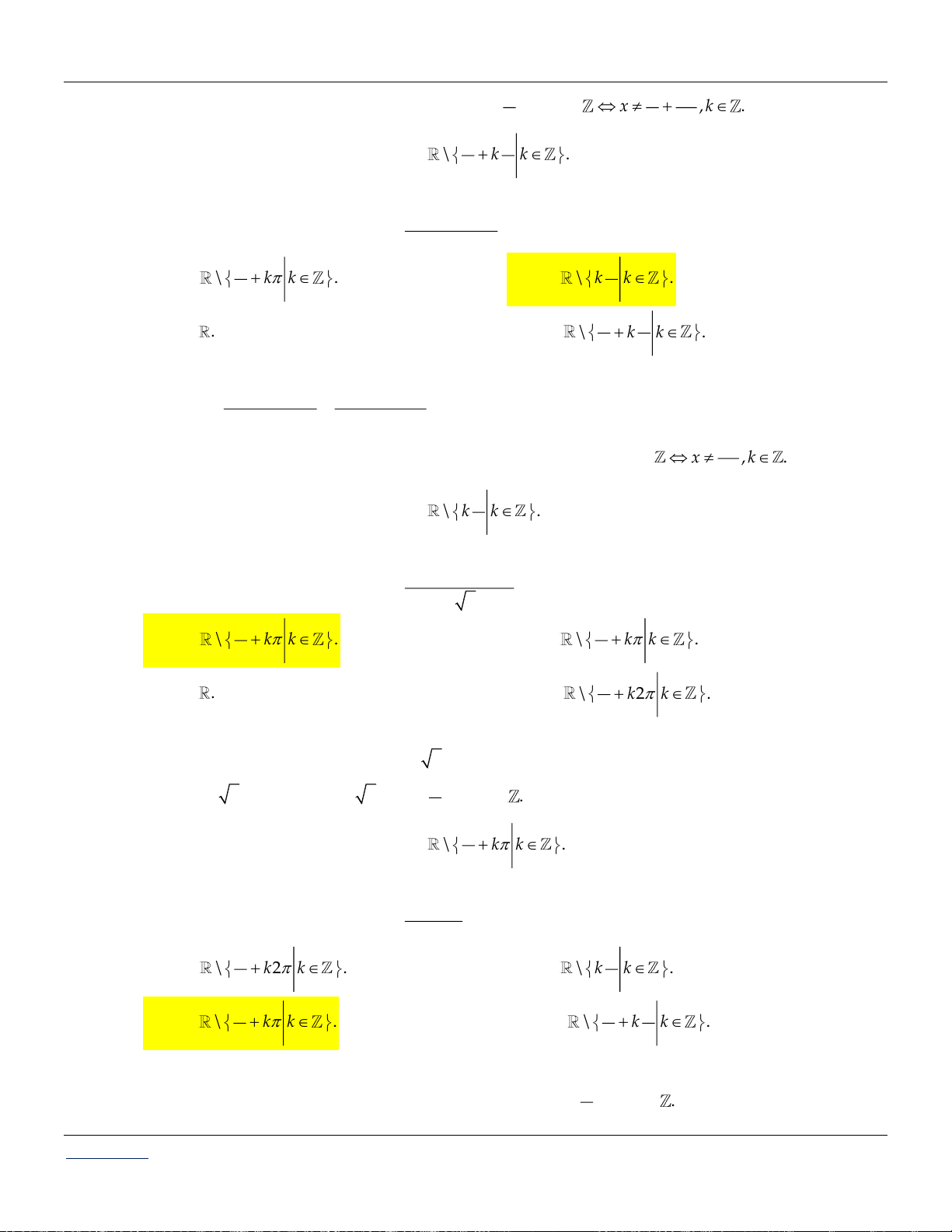 Vậy tập xác định của hàm số là D = \ + , k . 24 4