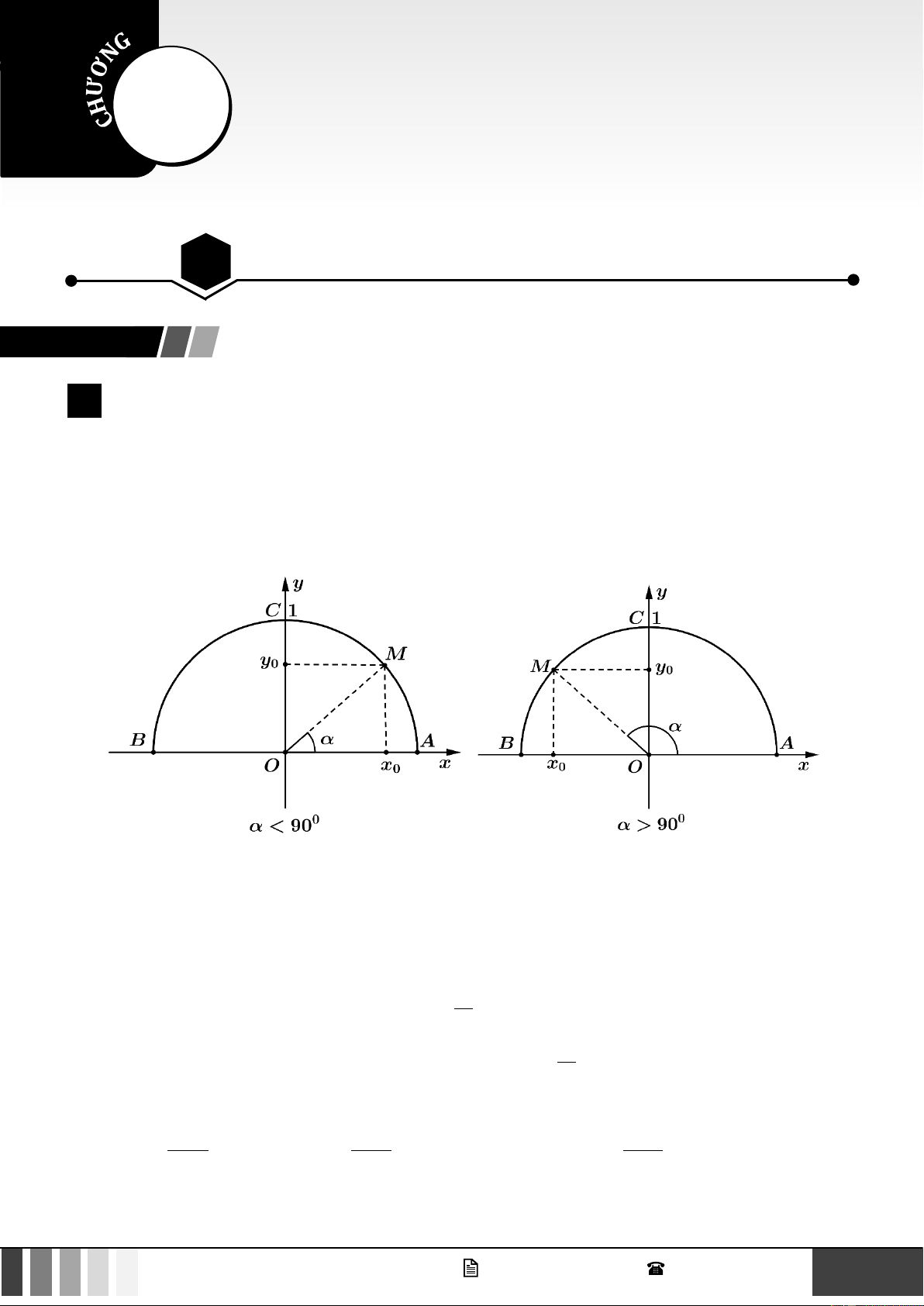 Cho trước một góc , 0 180 . Khi đó có duy nhất điểm M ( x ; y trên nửa đường tròn đơn vị nói 0 0 )