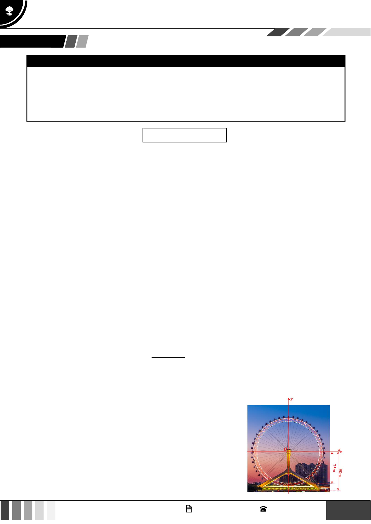 Bài tập 3: Một chiếc đu quay có bán kính 75 m, tâm của vòng quay ở