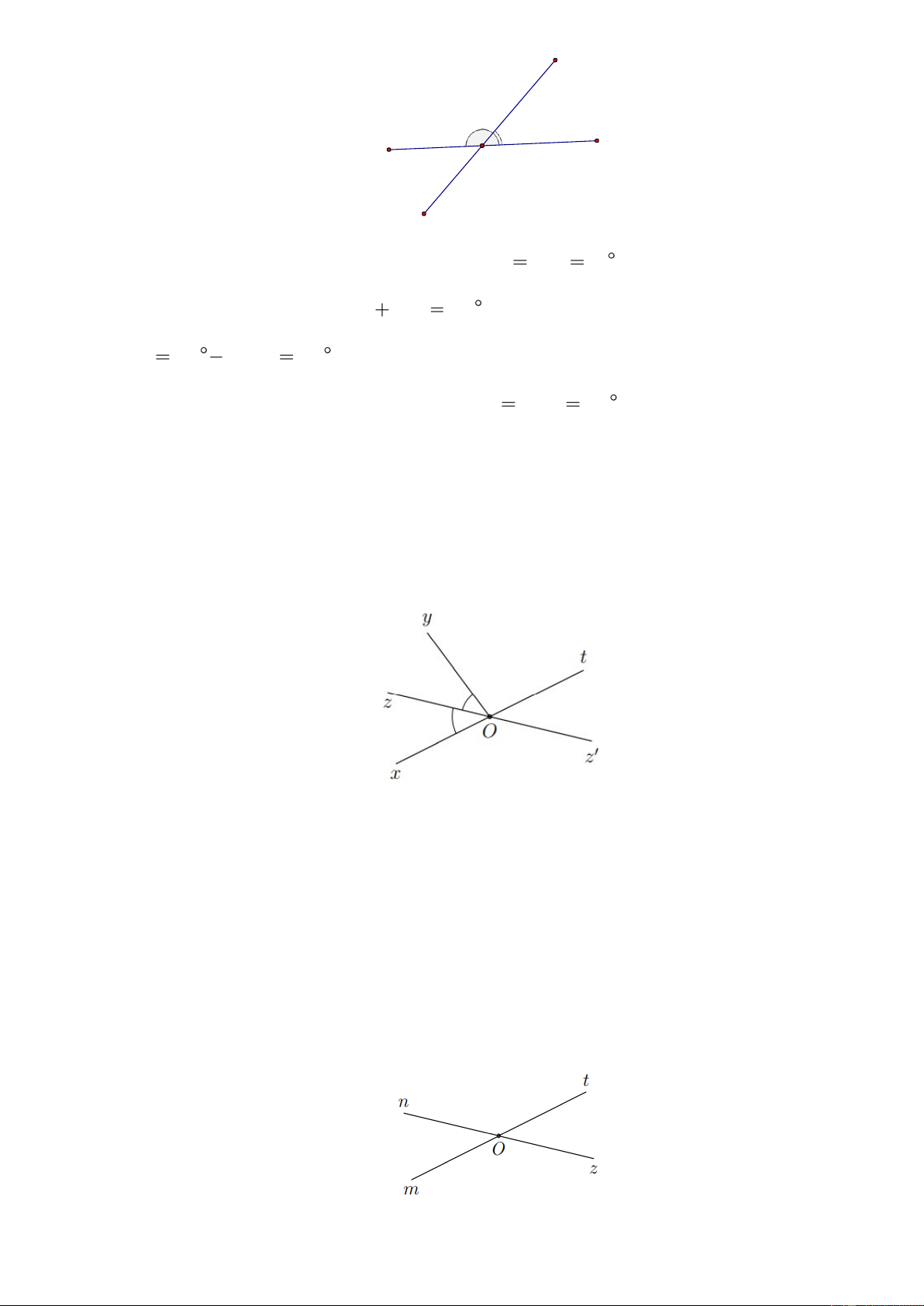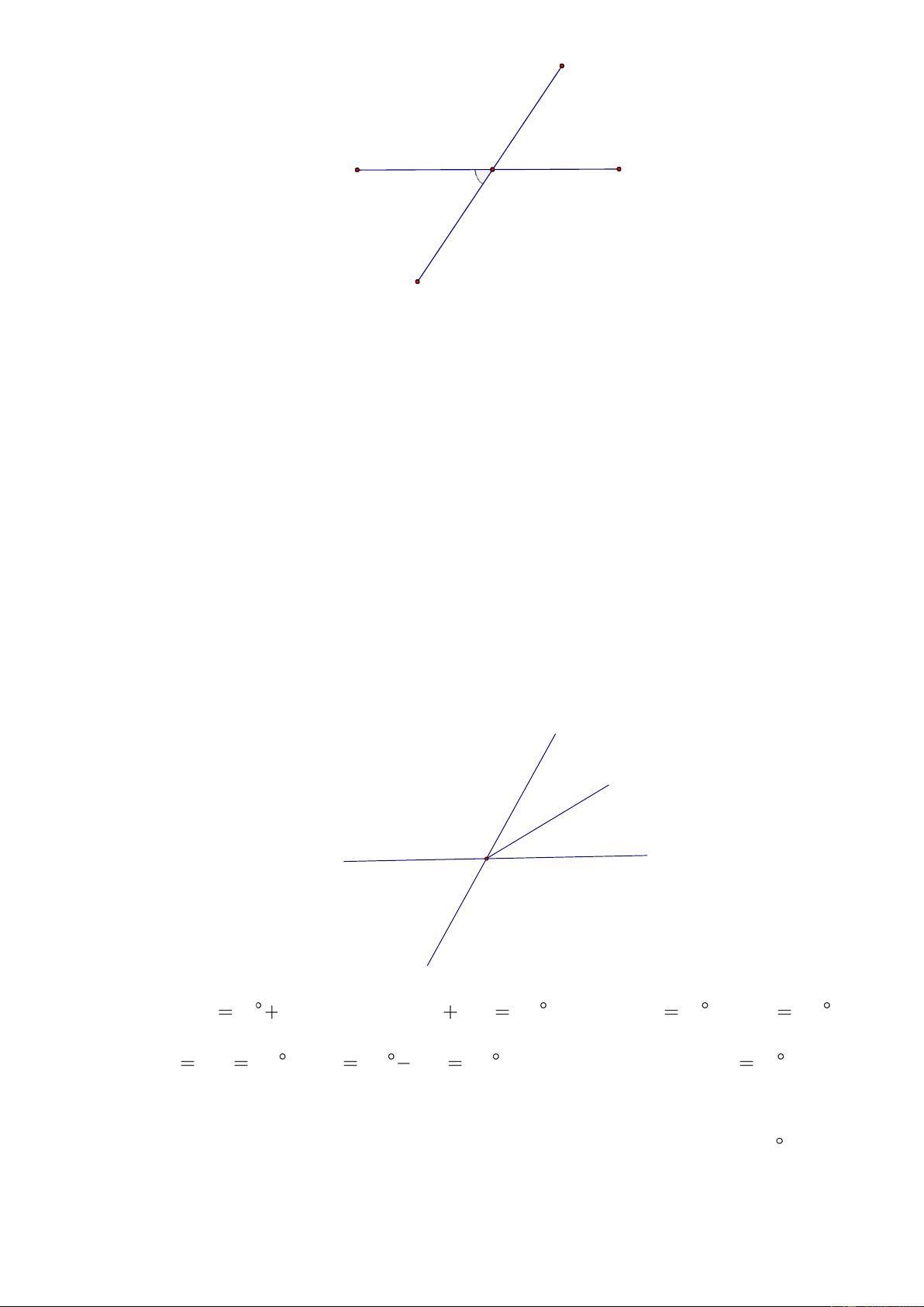 Vẽ hai đoạn thẳng cắt nhau sao cho trong số các góc tạo thành có một góc bằng 47 . Tính số đo các góc còn lại. Lời giải: