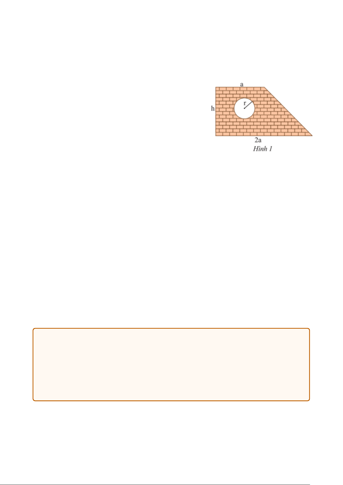 Vận dụng 1. Một bức tường hình thang có cửa sổ hình tròn với các kích thước như Hình 1 (tính bằng m)