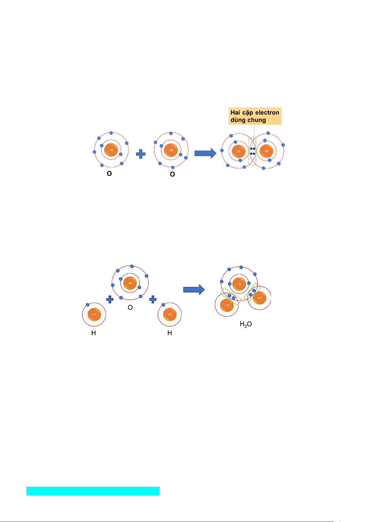 + Sau khi hình thành liên kết thì nguyên tử O có 8 electron ở lớp ngoài cùng (lớp vỏ electron bền vững