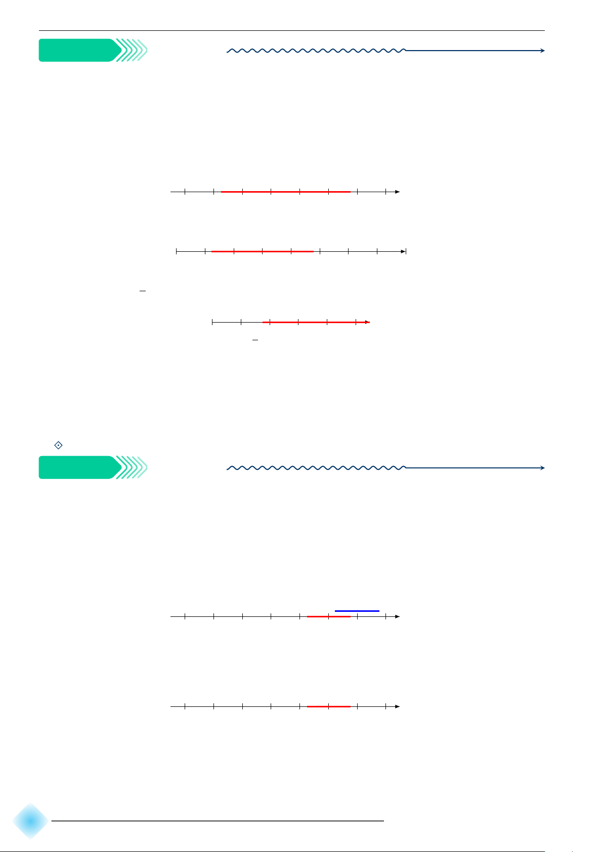 a) Nửa khoảng, A = (−2; 3]. ( ] x −3 −2 −1 0 1 2 3 4 b) Đoạn, B = [−3; 1]. [ ] x −4 −3 −2 −1 0 1 2 3 4 1 c) Khoảng, C = , +∞ . 2 ( x −1 0 1 1 2 3 4 2