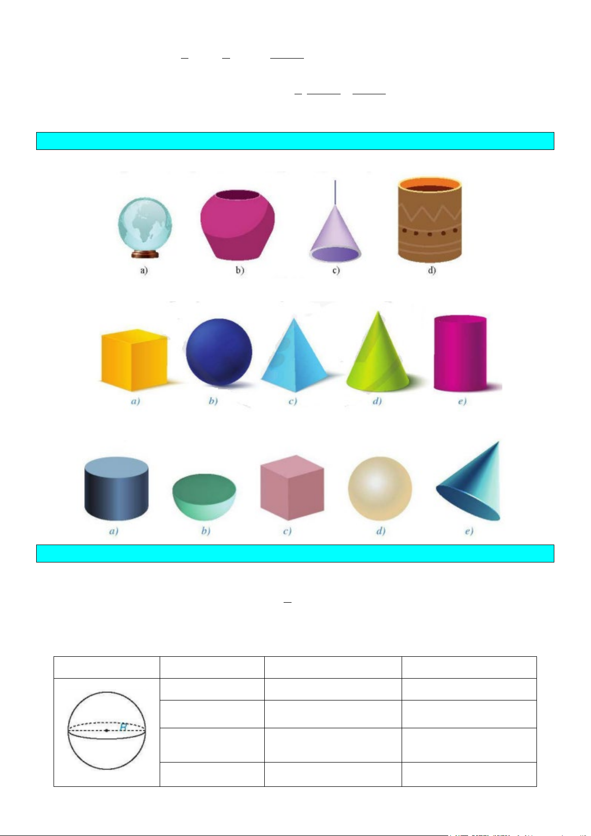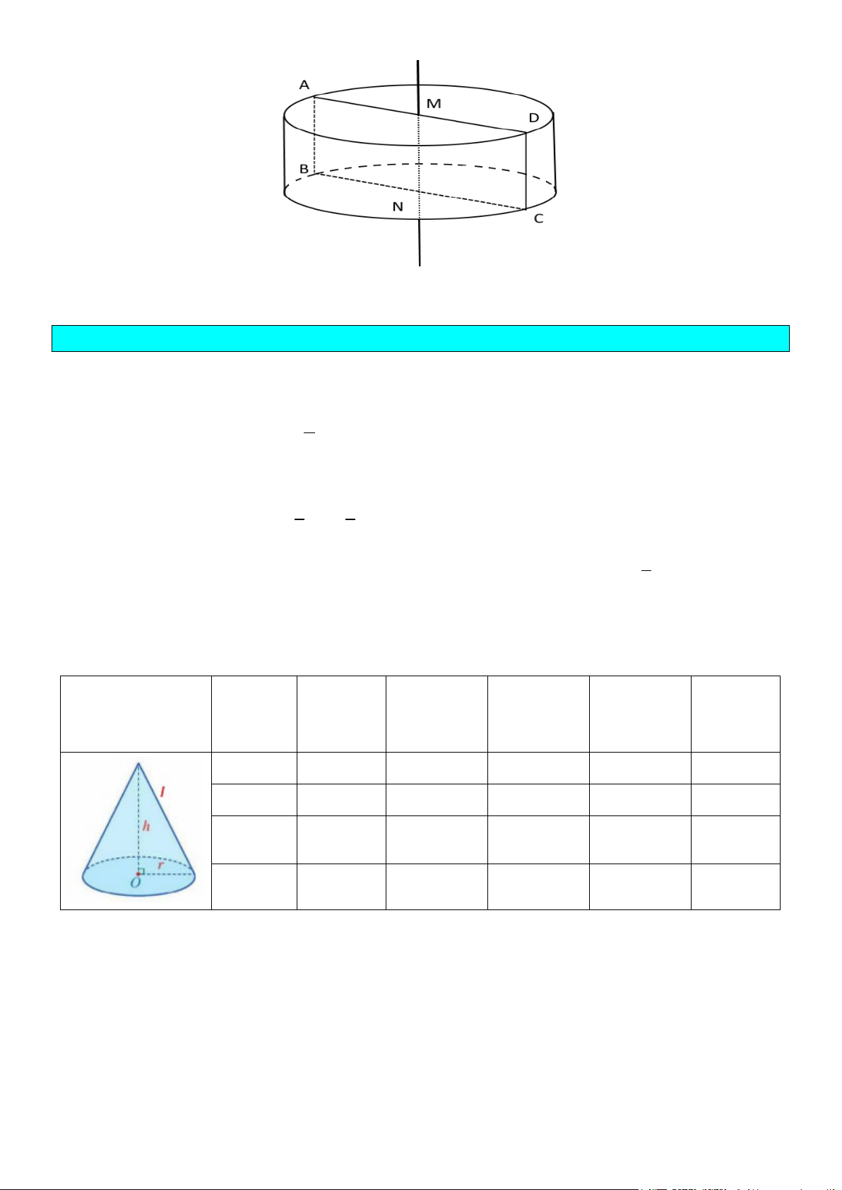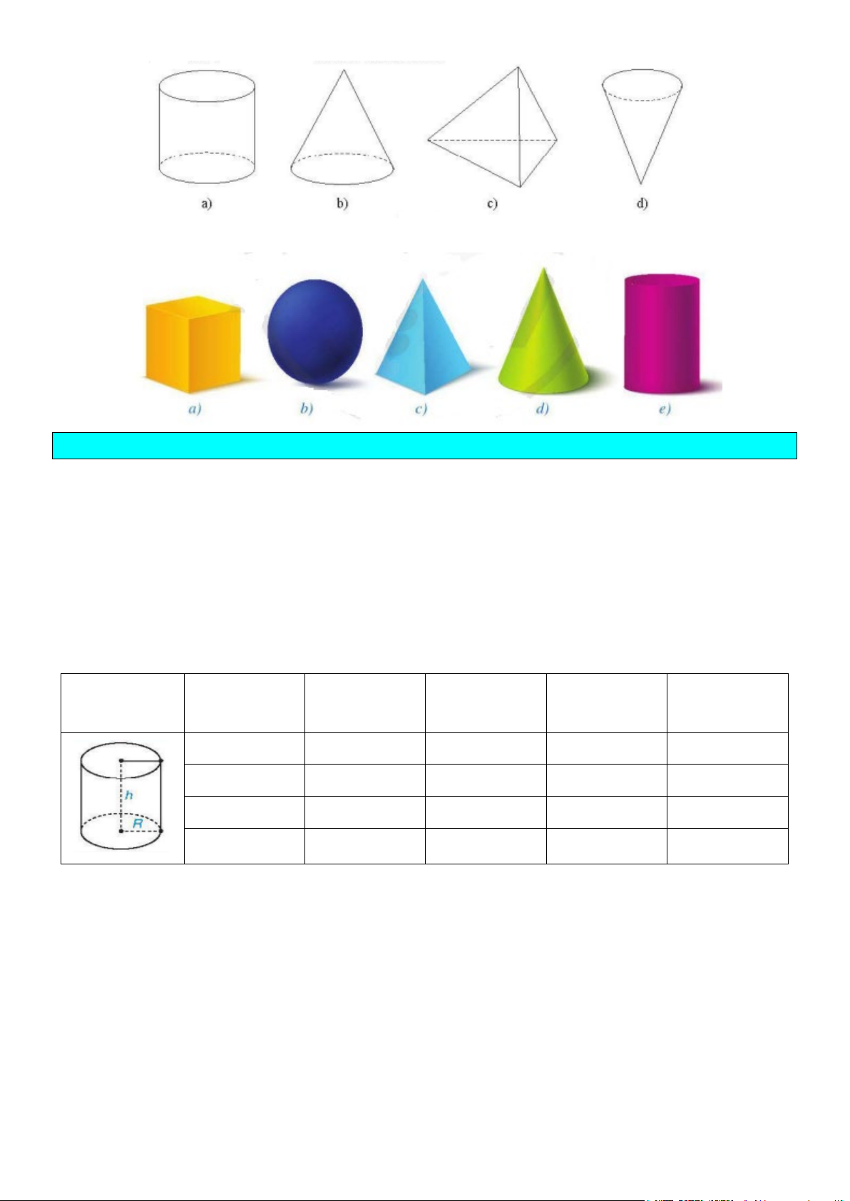 A. CÁC KIẾN THỨC CƠ BẢN CẦN NẮM 1. HÌNH TRỤ Nhận biết hình trụ