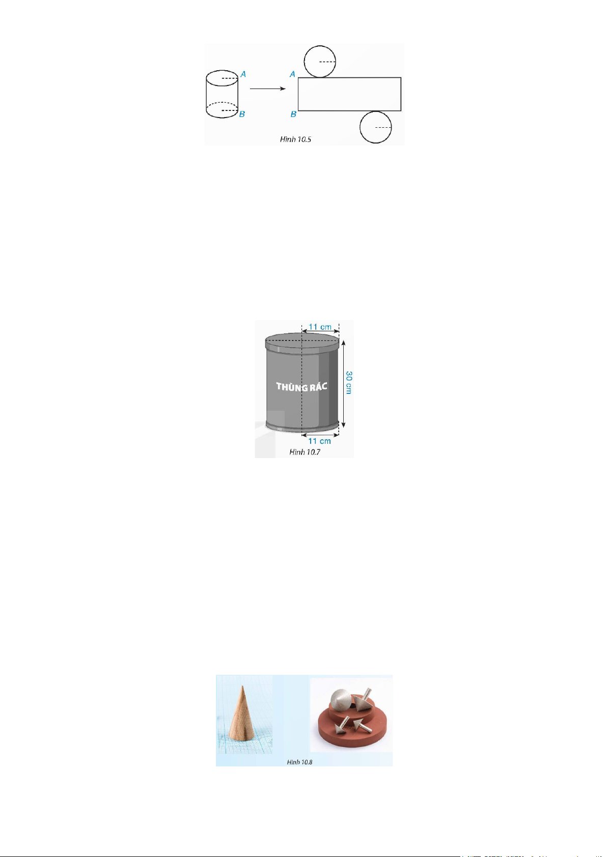 được một hình phẳng (gồm hai hình tròn và một hình chữ nhật) như Hình 10.5 gọi là hình khai triển của hình trụ đã cho.