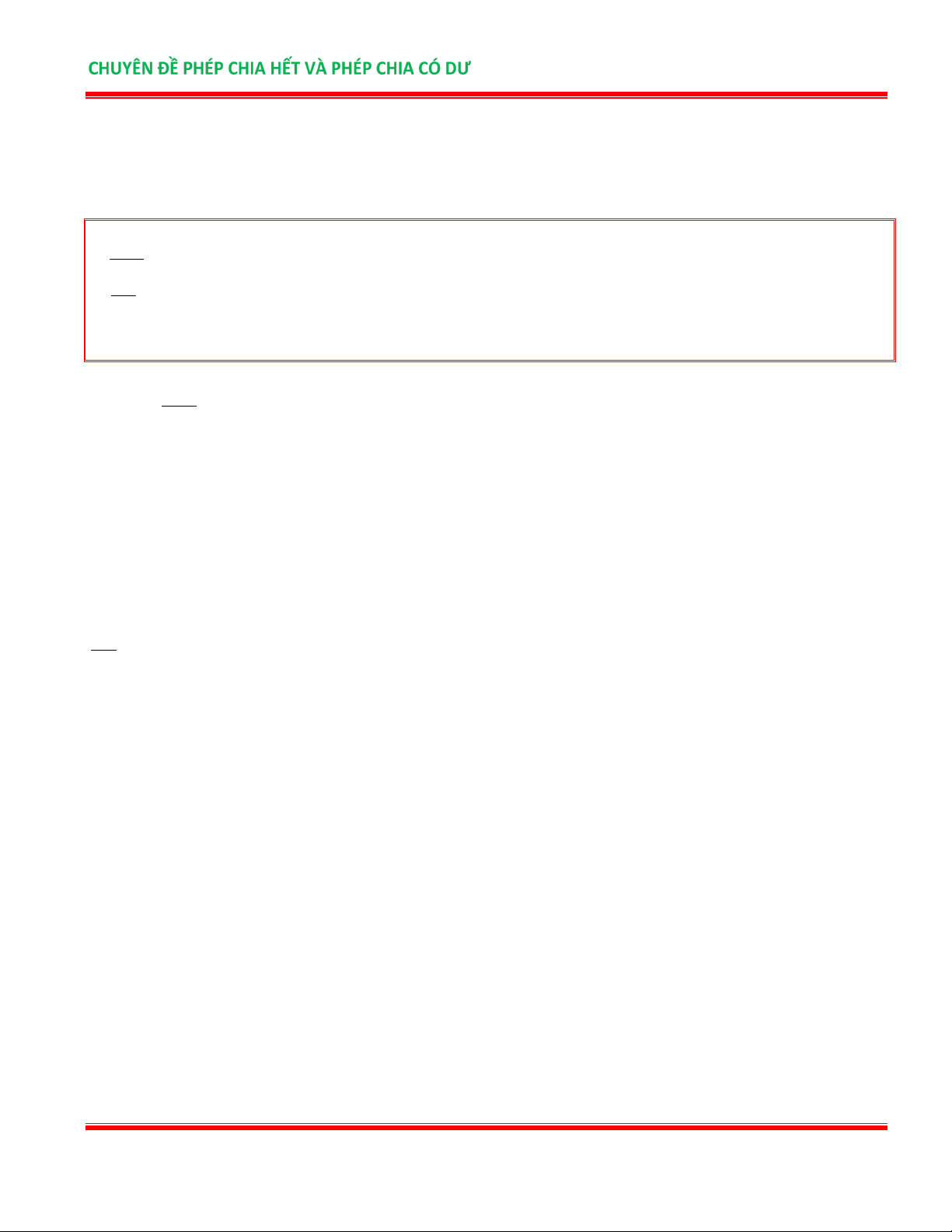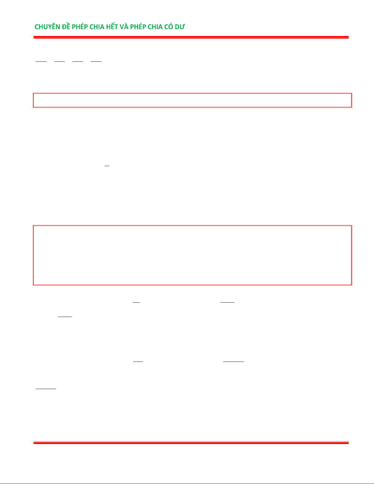 CHUYÊN ĐỀ PHÉP CHIA HẾT VÀ PHÉP CHIA CÓ DƯ