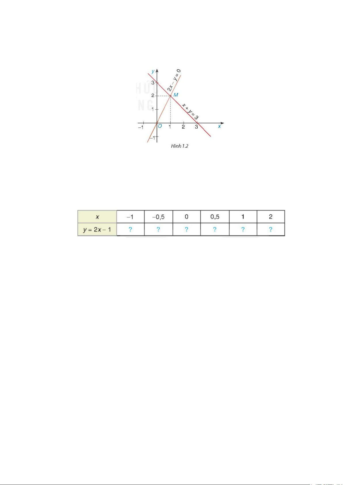 Chú ý: Trong Ví dụ 5 , cặp số (1;2) là nghiệm của hệ phương trình đã cho có nghĩa là điểm M (1;2) vừa