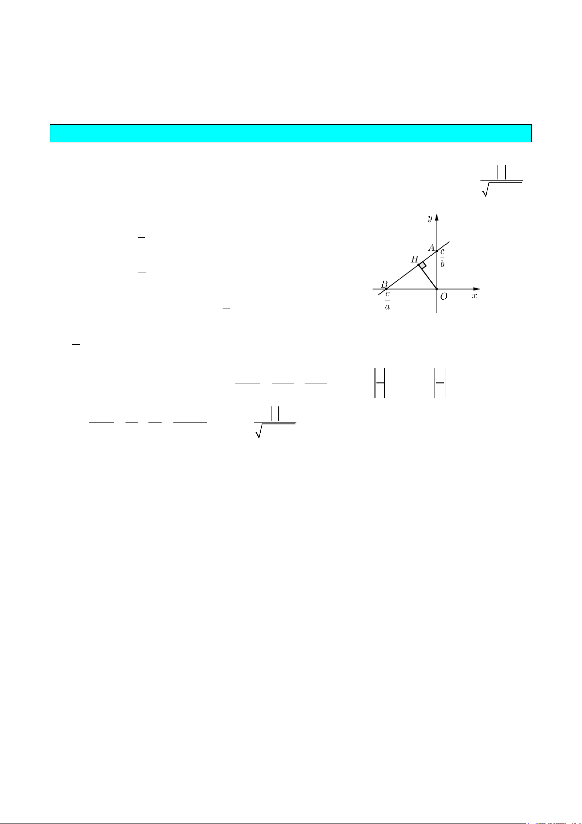 và cắt trục hoành tại điểm b c B ;0 a Kẻ đường cao 1 1 1 OH của A ∆ BO , ta có: = + mà c OA = và c OB = 2 2 2 OH OA OB b a 2 2 2 2 Do đó 1 b a a + b c = + = ⇒ OH = . 2 2 2 2 2 2 OH c c c a + b 2. Các ví dụ