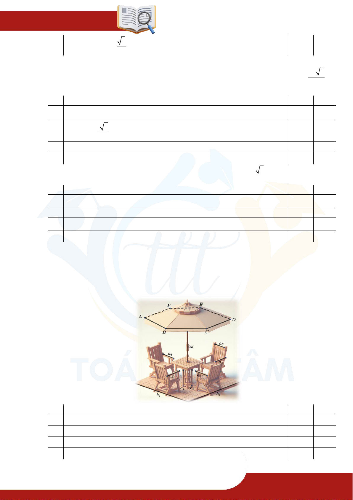 » Câu 33. Một ô che nắng có viền khung hình lục giác đều ABCDEF . Biết các thanh gỗ a ,a ,a 1 3 5