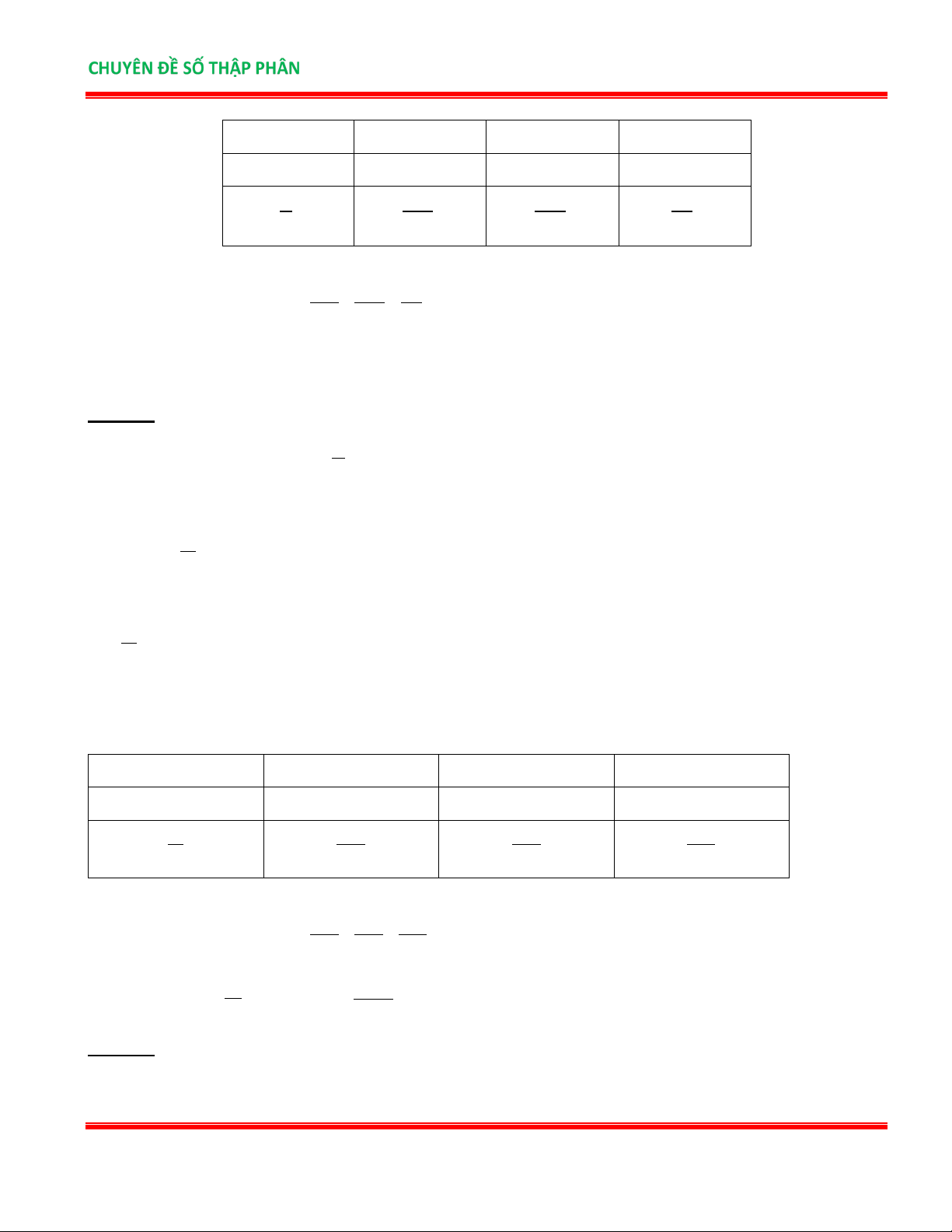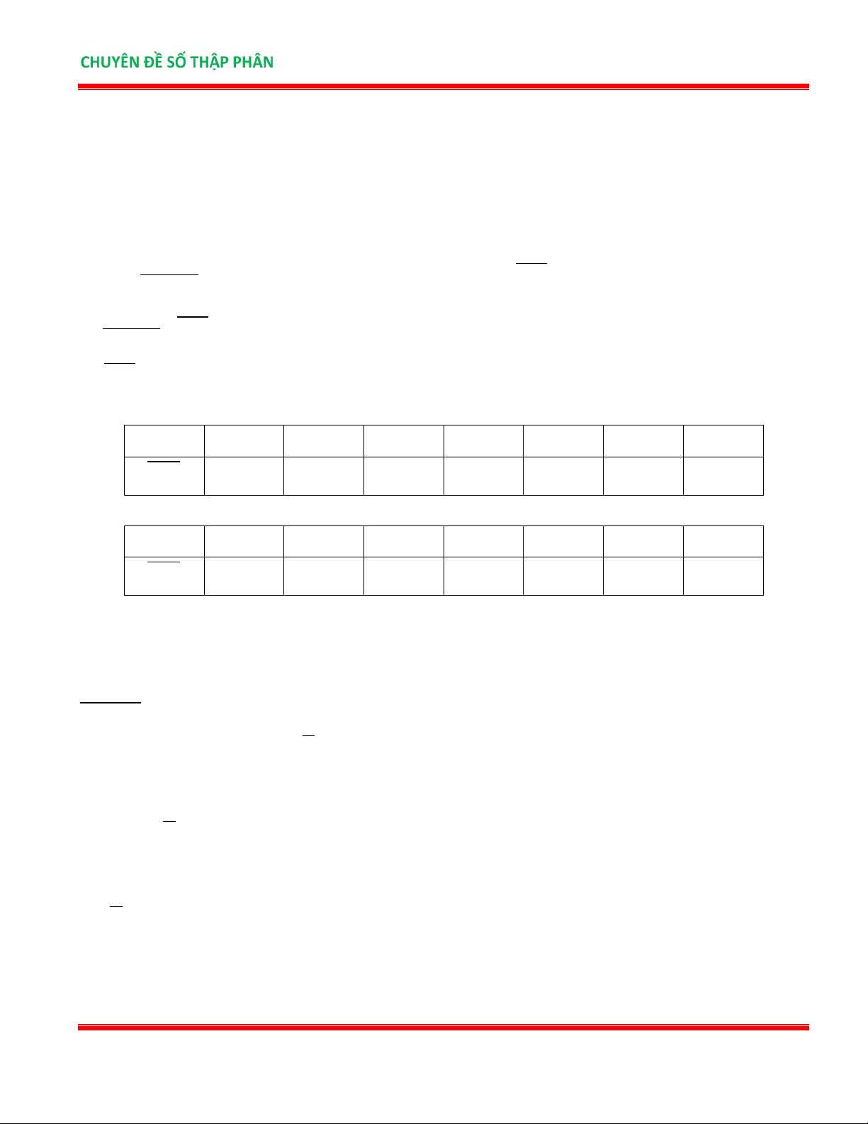 kì làm tử, còn mẫu là một số gồm các chữ số 9, số chữ số 9 bằng số chữ số của chu kì. Ví dụ: ( ) 6 2 = = ( ) 21 7 0, 6 ; 0, 21 = = 9 3 99 33