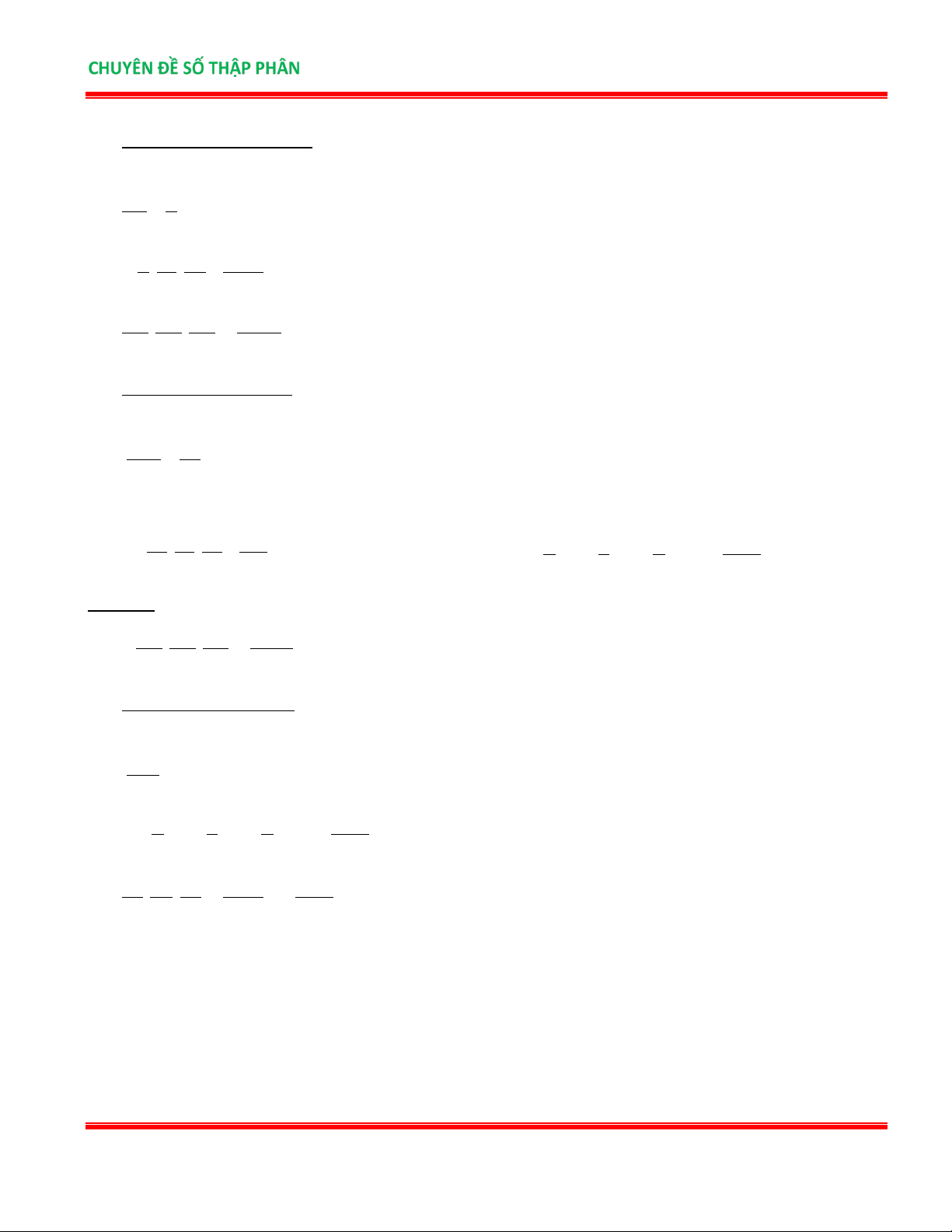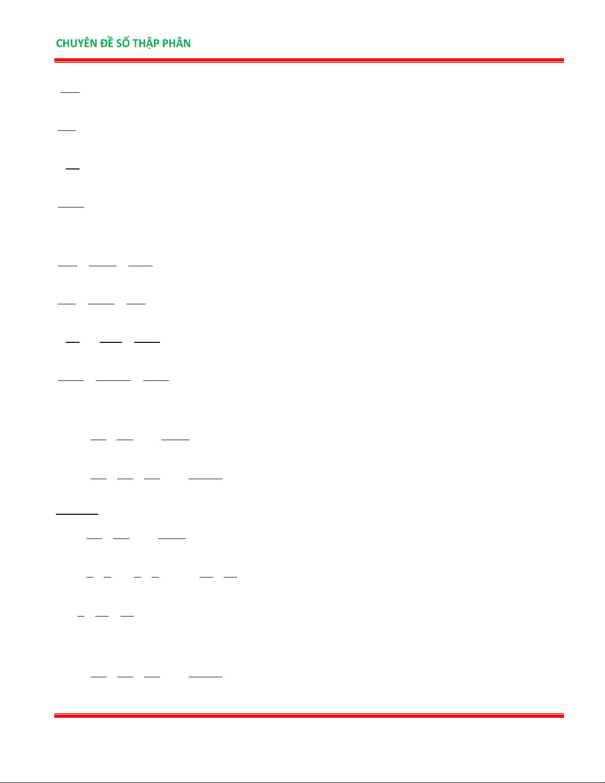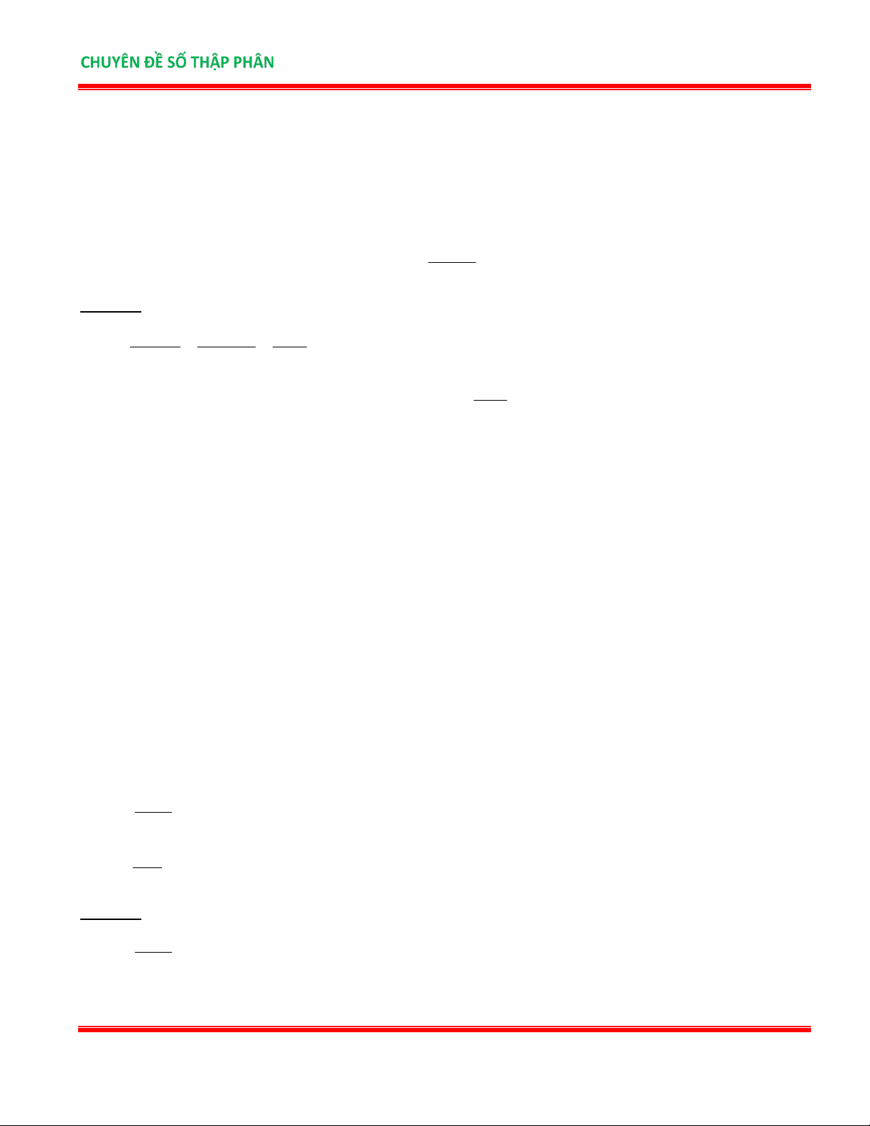 có ước nguyên tố khác 2 và 5. 6 1 − 4 7 1 − − = = = 1, − 75 (mẫu 2 4 = 2 ) 8 8 4 9 − = 0, − 36 ( mẫu 2 25 = 5 ) 25 39 13 = = 0,65 (mẫu 2 20 = 2 .5) 60 20 121 11 = = 0,55 (mẫu 2 20 = 2 .5) 220 20 204 51 − = = 1 − ,275 (mẫu 3 40 = 2 .5 ) 160 − 40 378 126 = = 1,008 (mẫu 3 125 = 5 ) 375 125