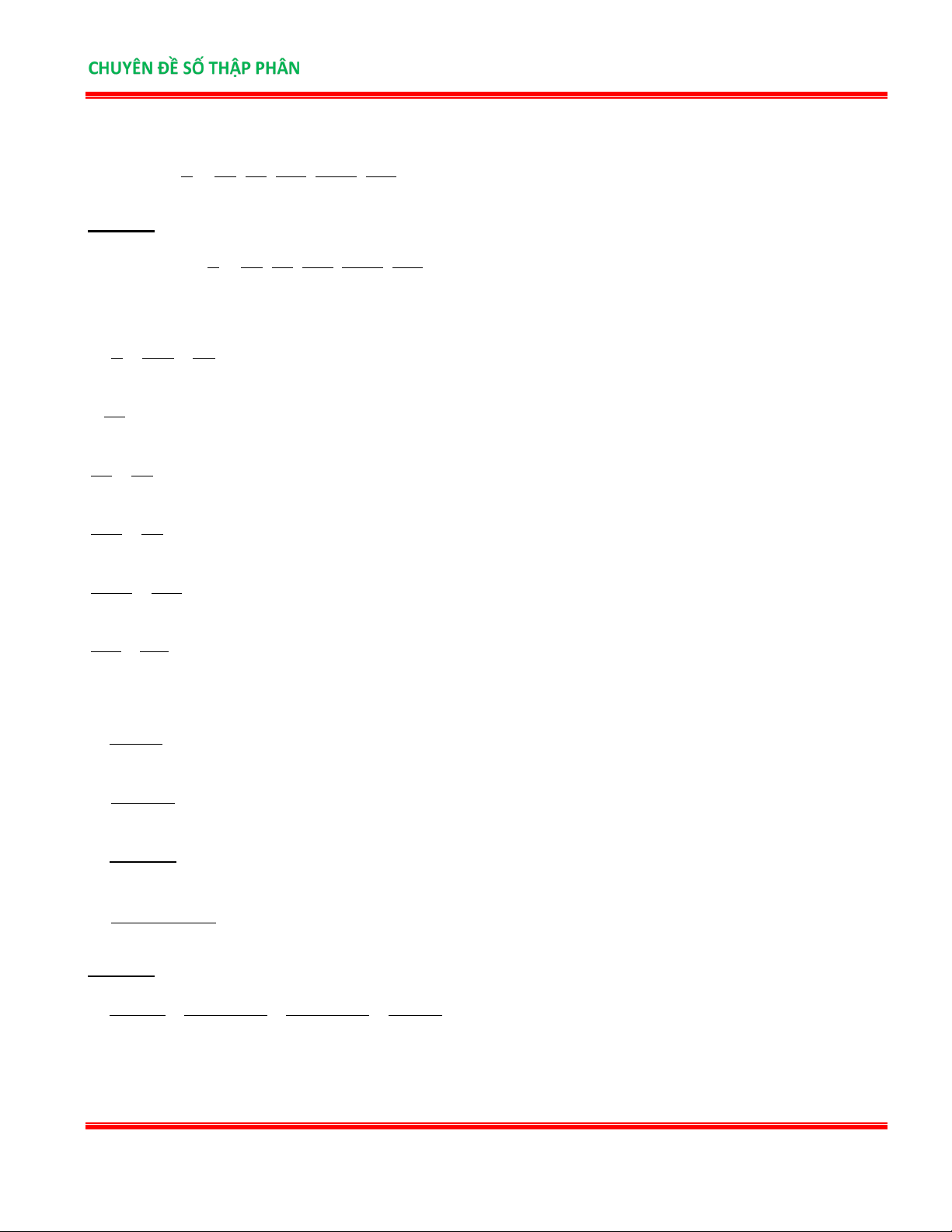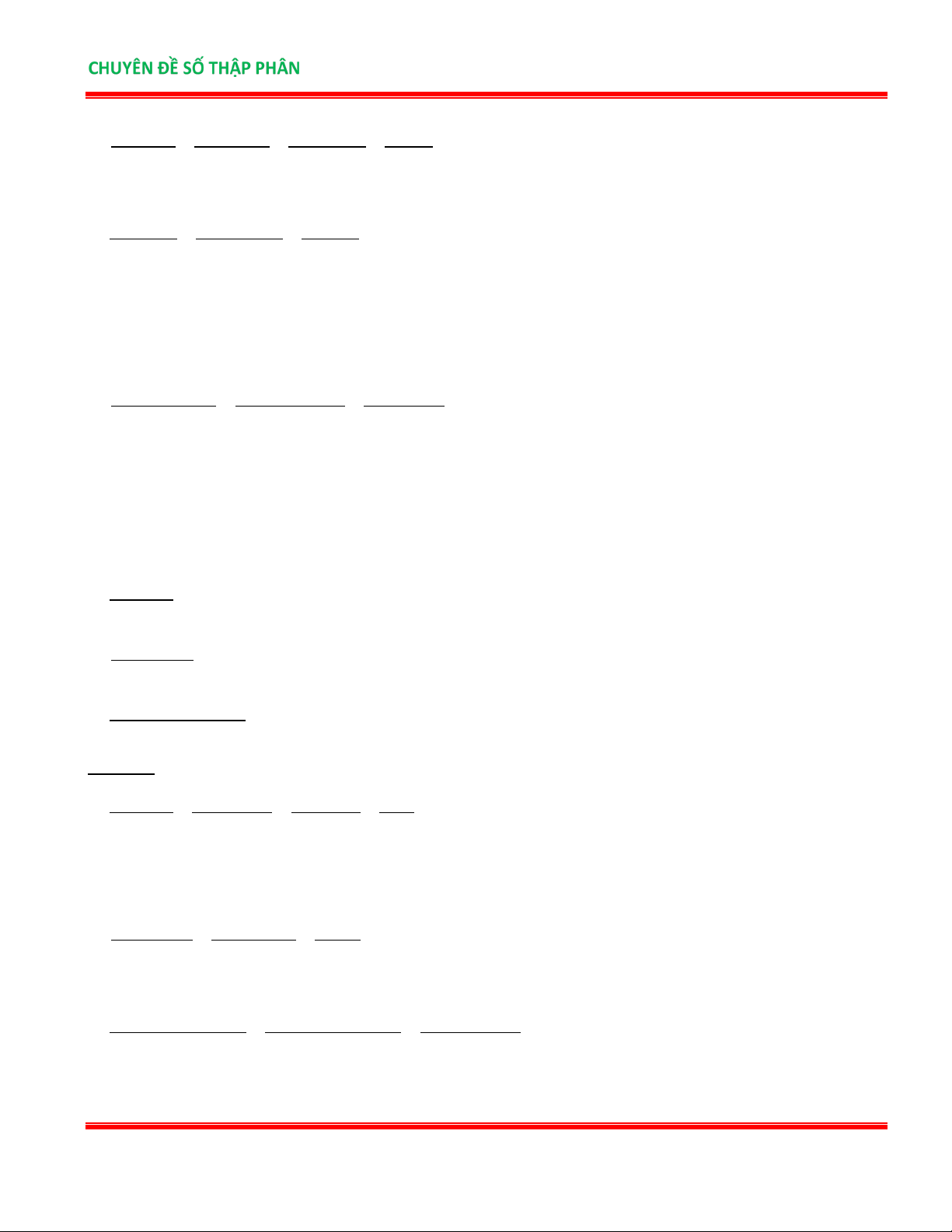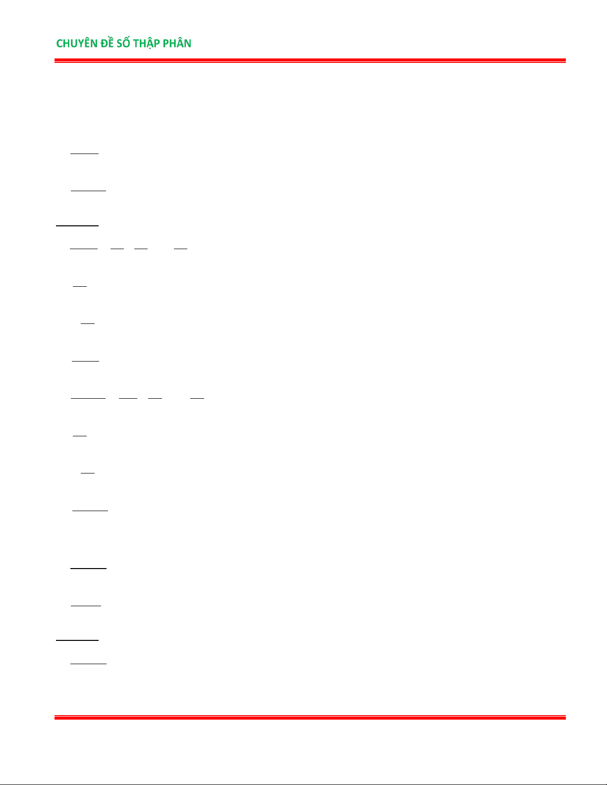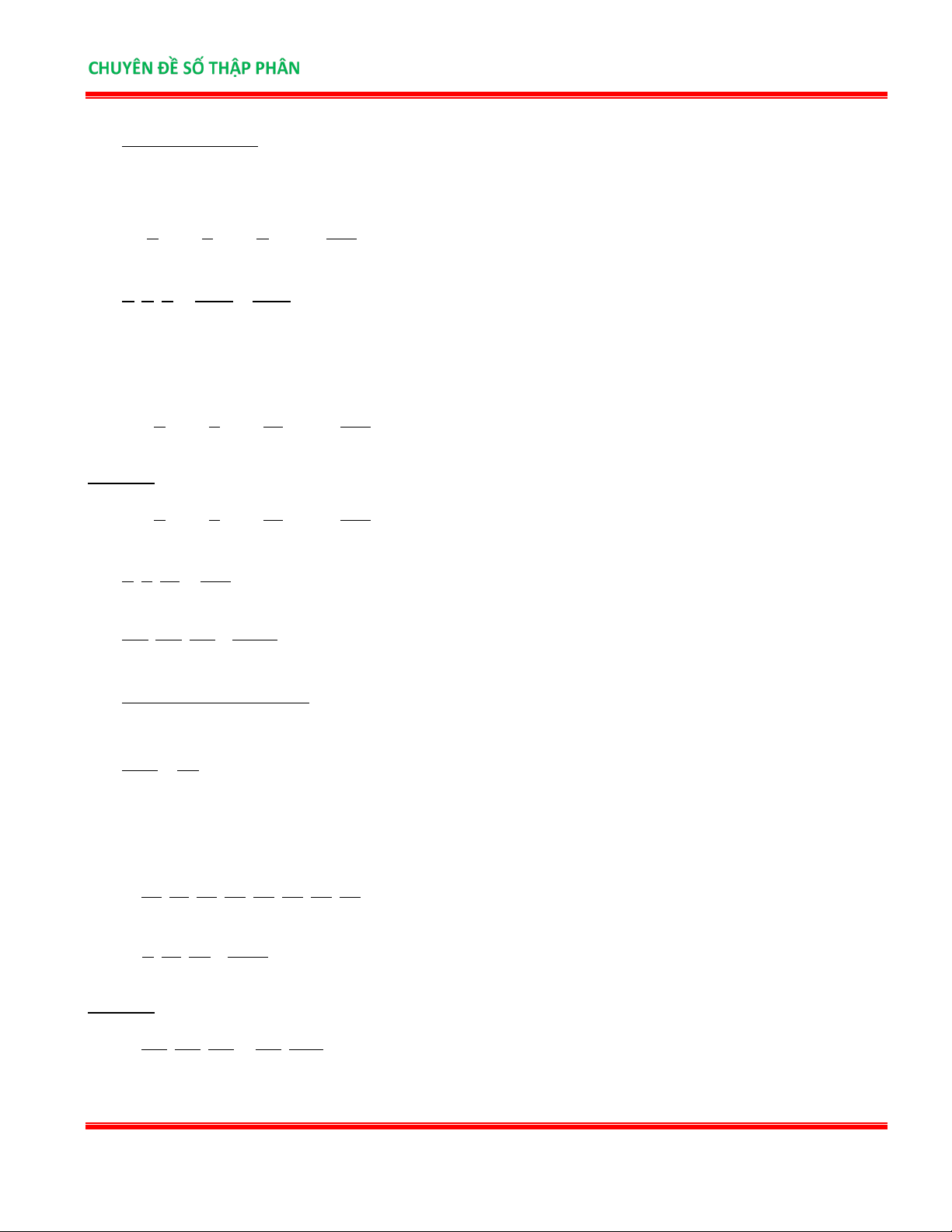 có ước nguyên tố khác 2 và 5. 6 1 − 4 7 1 − − = = = 1, − 75 (mẫu 2 4 = 2 ) 8 8 4 9 − = 0, − 36 ( mẫu 2 25 = 5 ) 25 39 13 = = 0,65 (mẫu 2 20 = 2 .5) 60 20 121 11 = = 0,55 (mẫu 2 20 = 2 .5) 220 20 204 51 − = = 1 − ,275 (mẫu 3 40 = 2 .5 ) 160 − 40 378 126 = = 1,008 (mẫu 3 125 = 5 ) 375 125
