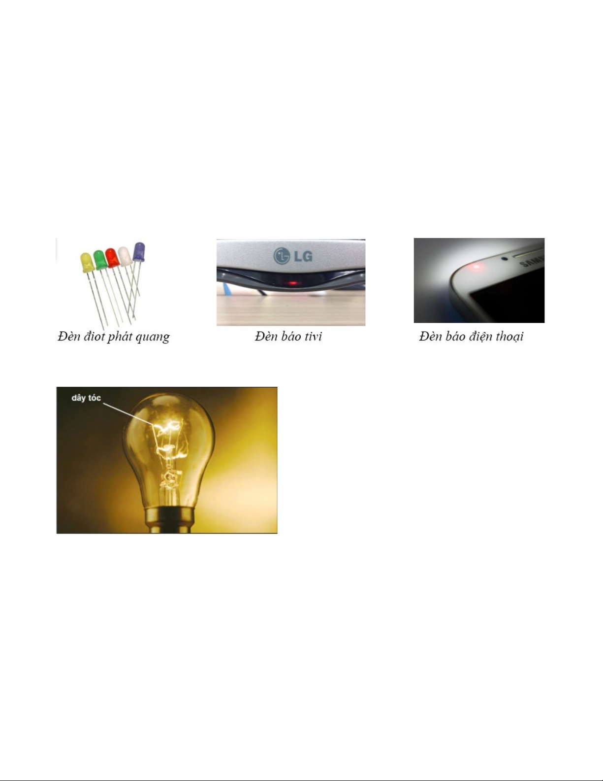 Câu 3.9Dòng điện có tác dụng phát sáng khi chạy qua dụng cụ nào dưới đây, khi
