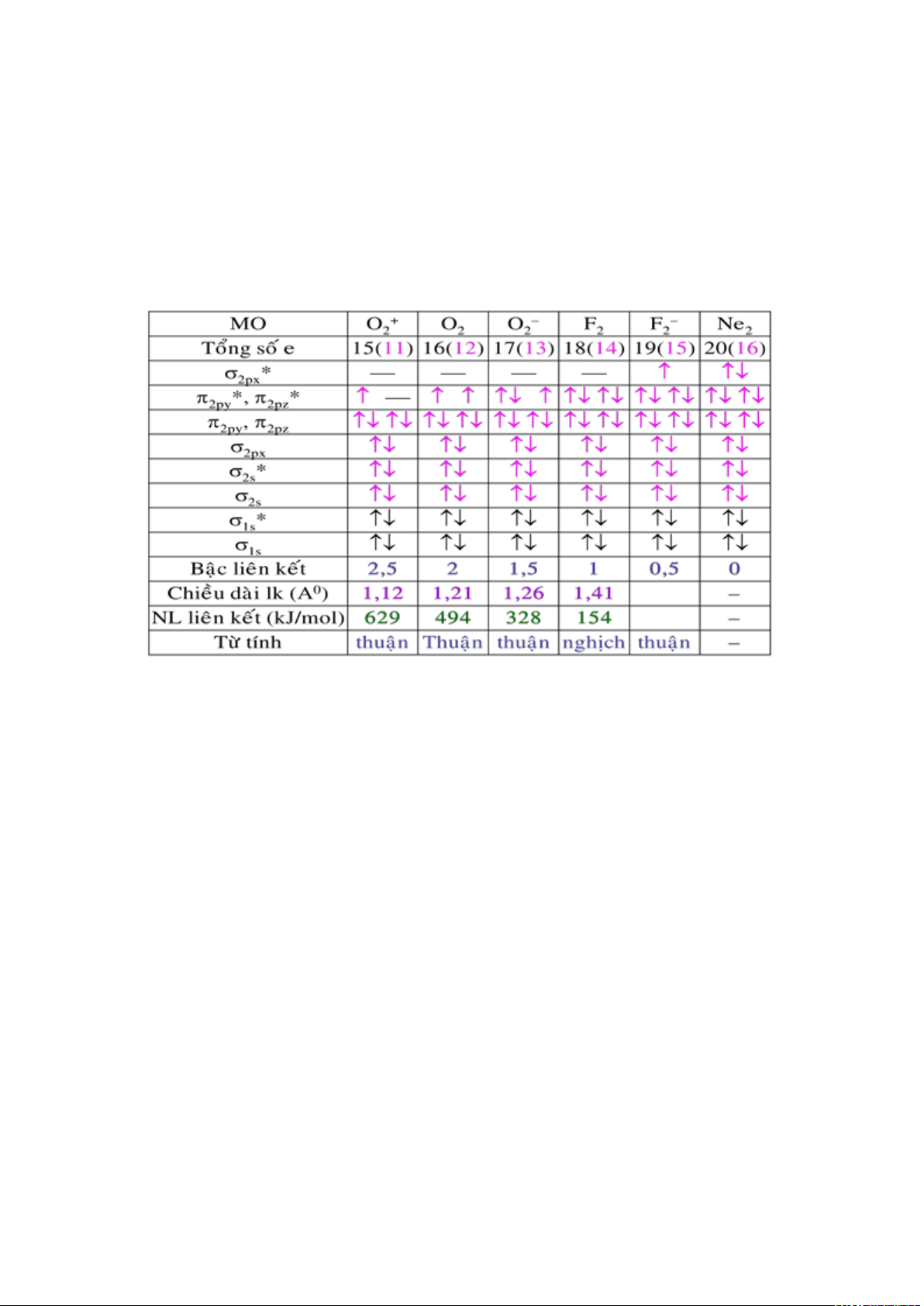 -Sự có mặt của hai electron ở MO phản liên kết trong phân tử O
