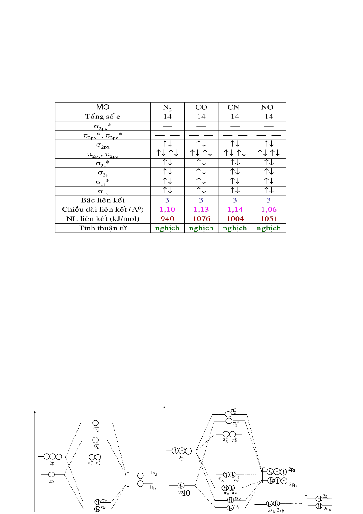 Bài 3: Lí thuyết obitan phân tử (MO) có thể được áp dụng để xác định sự lấp đầy các