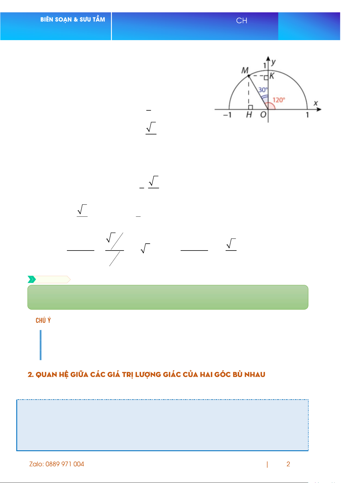 Trên nửa đường tròn đơn vị, xác định điểm M sao cho xOM =120. Suy ra yOM =30. Trang UYÊN ĐỀ Ngô Đức Tài