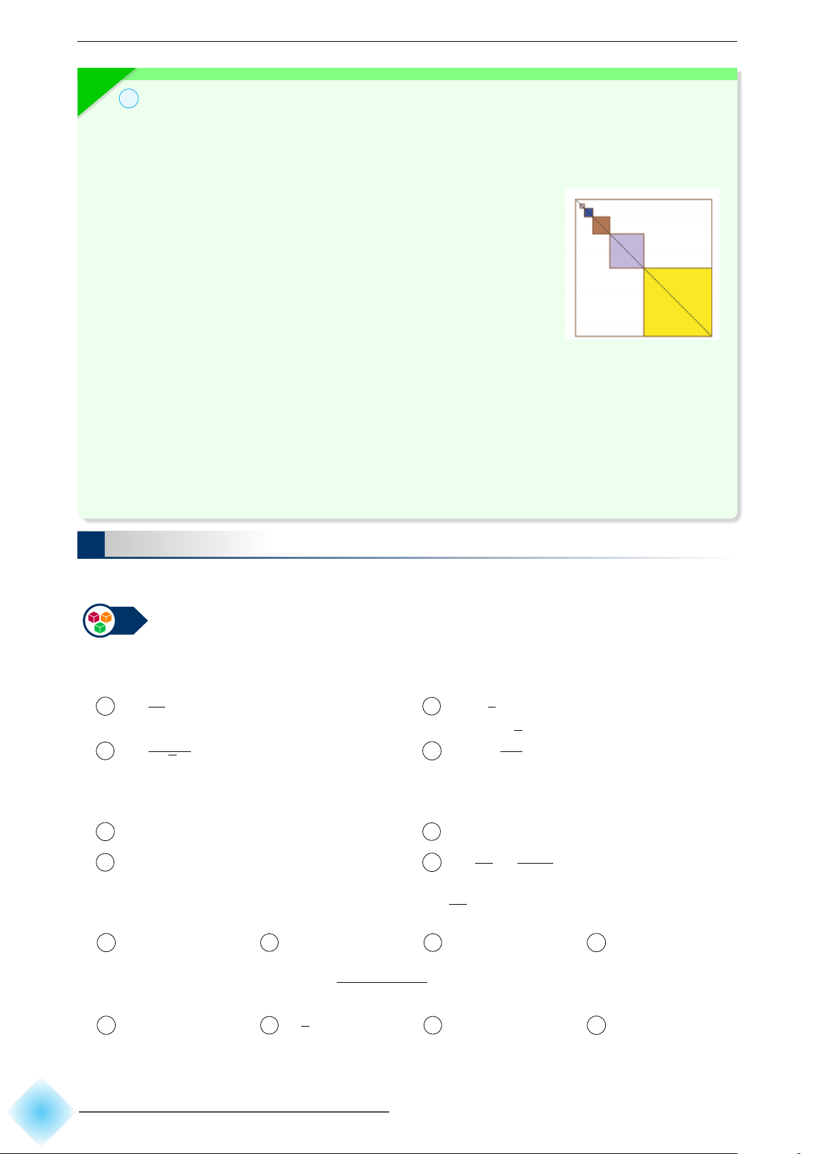 Mỗi hình vuông tiếp theo có diện tích bằng một phần