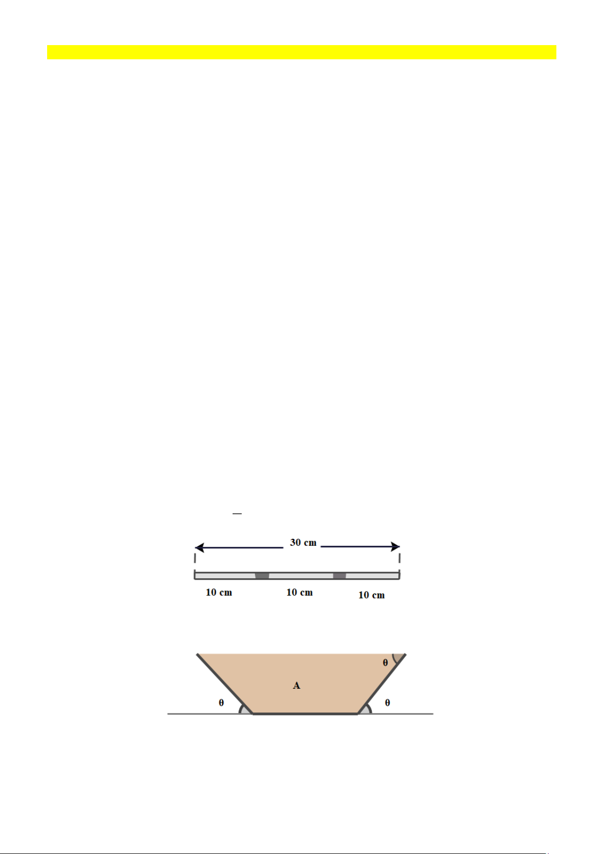 Câu 1. Mảng xối nước mưa được làm bằng một miếng nhôm rộng 30 cm. Sau khi đánh dấu chiều dài