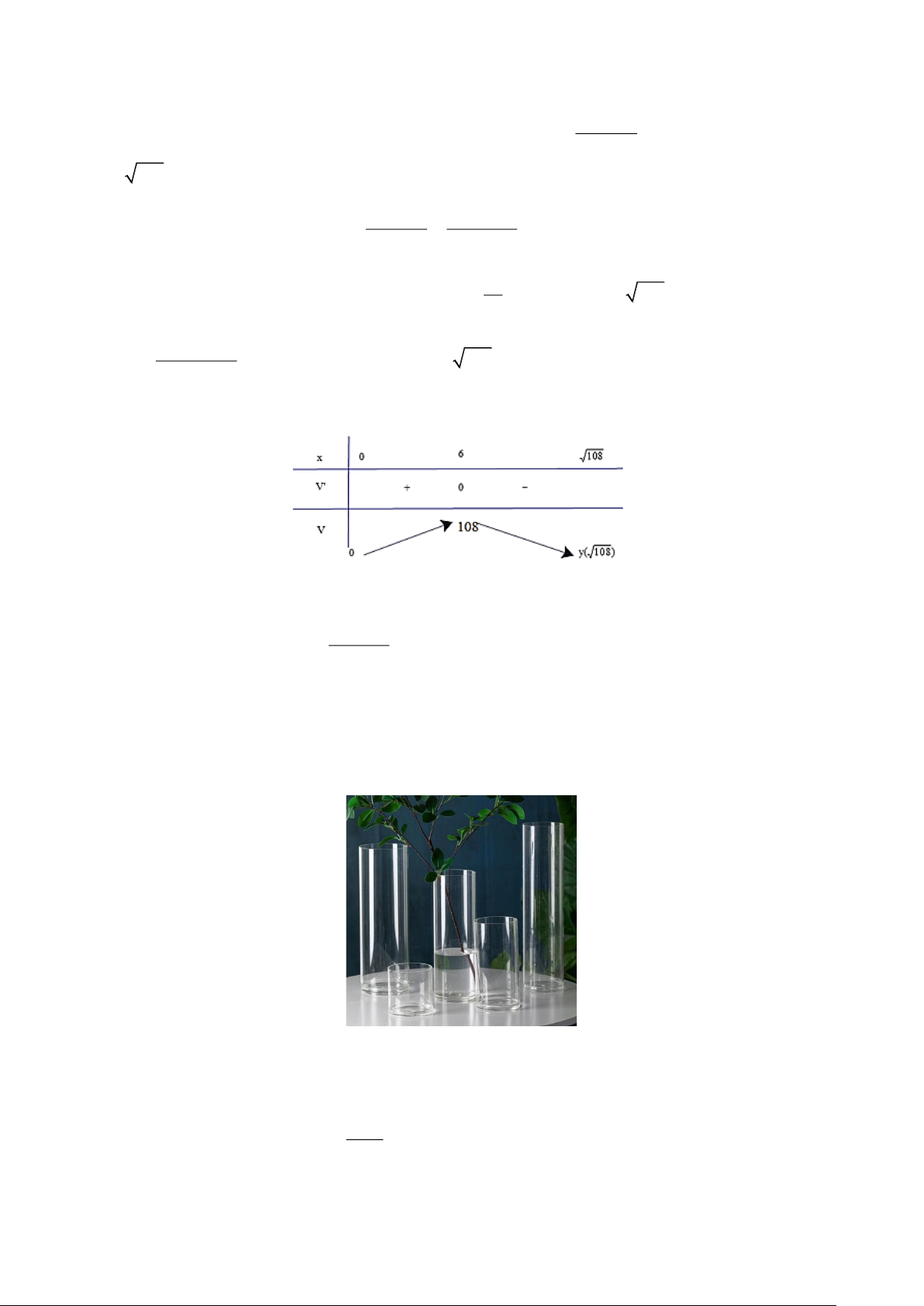 Do đó, thể tích của hình hộp là lớn nhất khi độ dài cạnh đáy x = 6 cm 2 108 − 6
