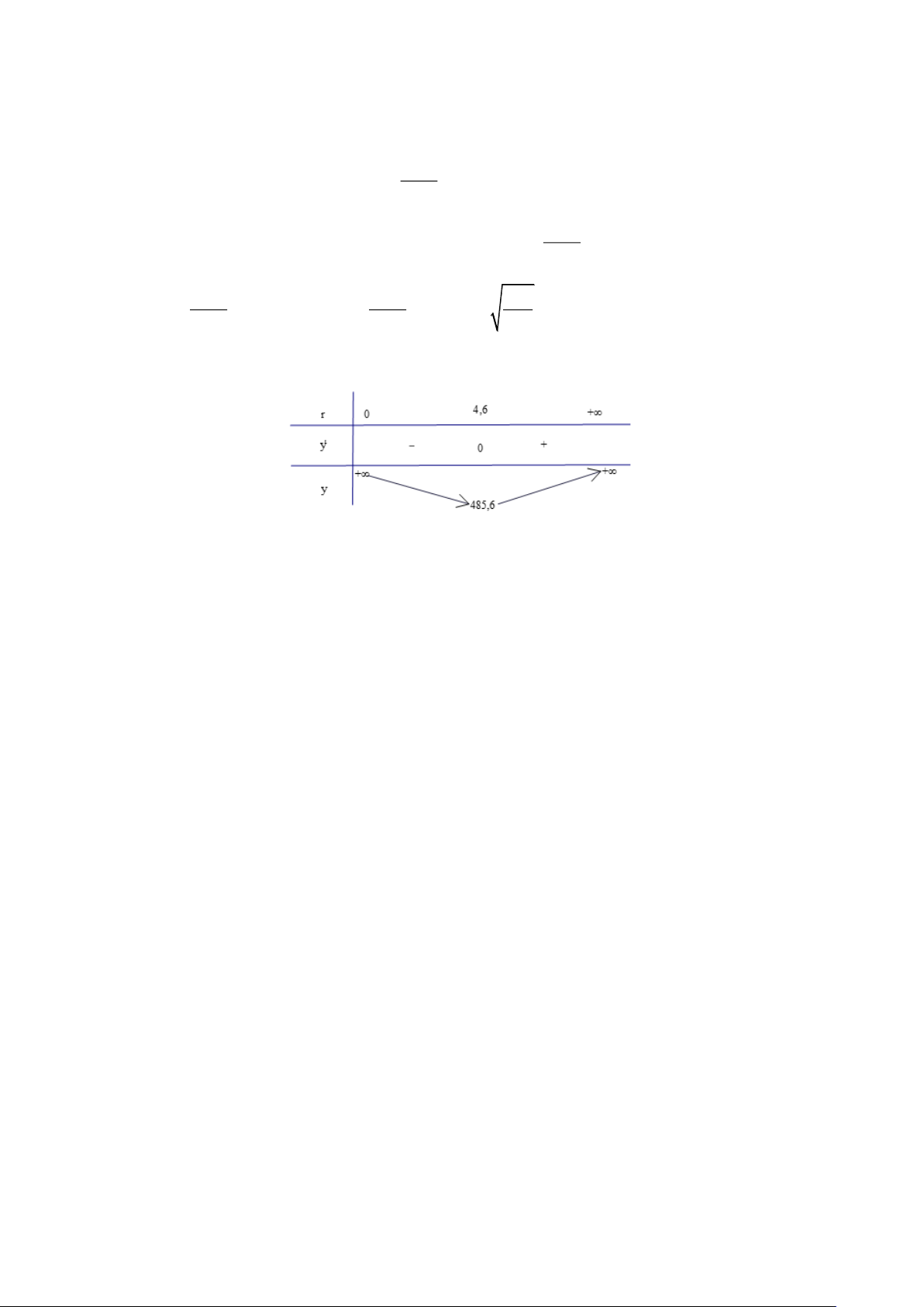 Bài toán trở thành tìm giá trị nhỏ nhất của hàm số 2 1500 y = 2, 4 r + , r 0 . r 1500 1500 625 Có = − 3 y 4,8 r