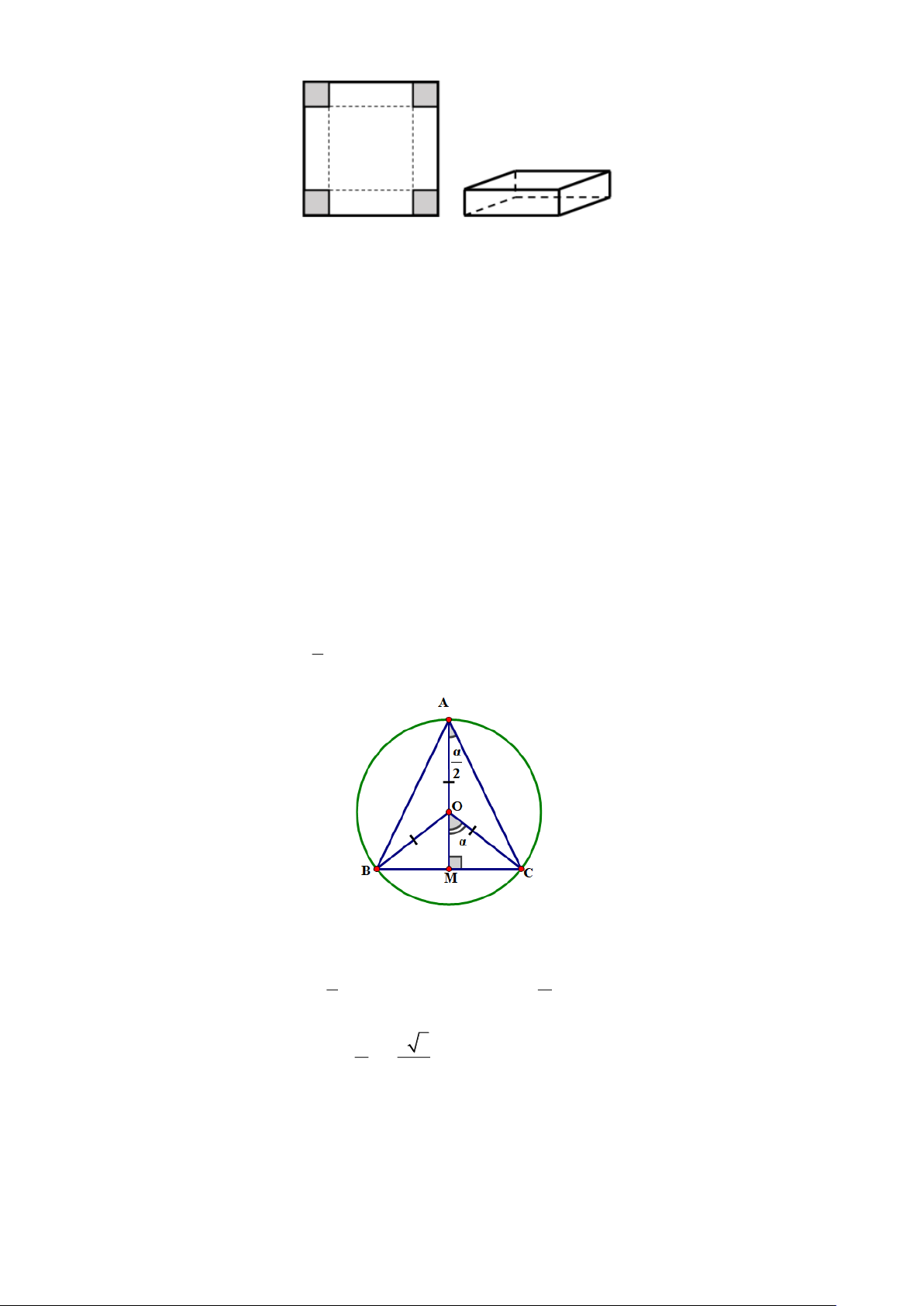 cạnh bằng x( cm) ở bốn góc và gấp lại thành một hình hộp không nắp . Tìm x để thể tích của hình hộp là lớn nhất.