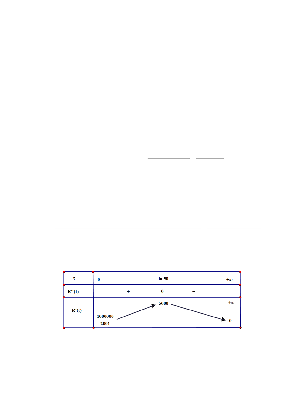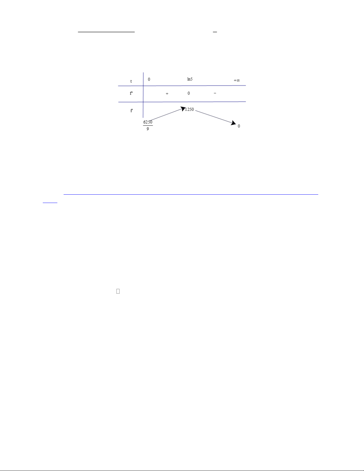 . Tốc độ bán hàng là lớn nhất khi ( ) lớn nhất. 1+ 5 −t e )2 (1+5 −t e )2 25000 −t e Đặt h(t) = ( . 1+ 5 −t e )2 2 − 5000 −t e (1+ 5 −t