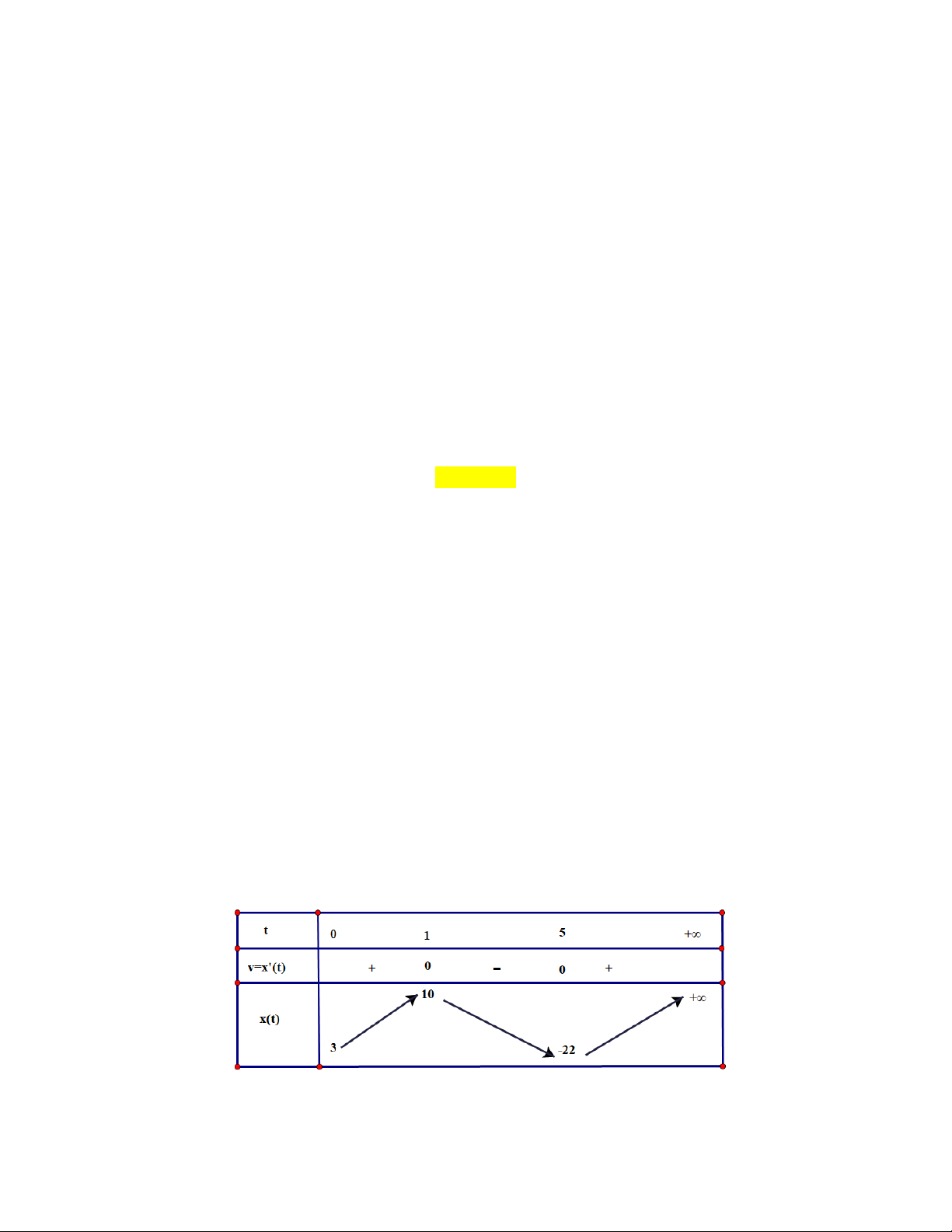 t) = 0 6t −12 = 0 t = 2 . Bảng biến thiên: