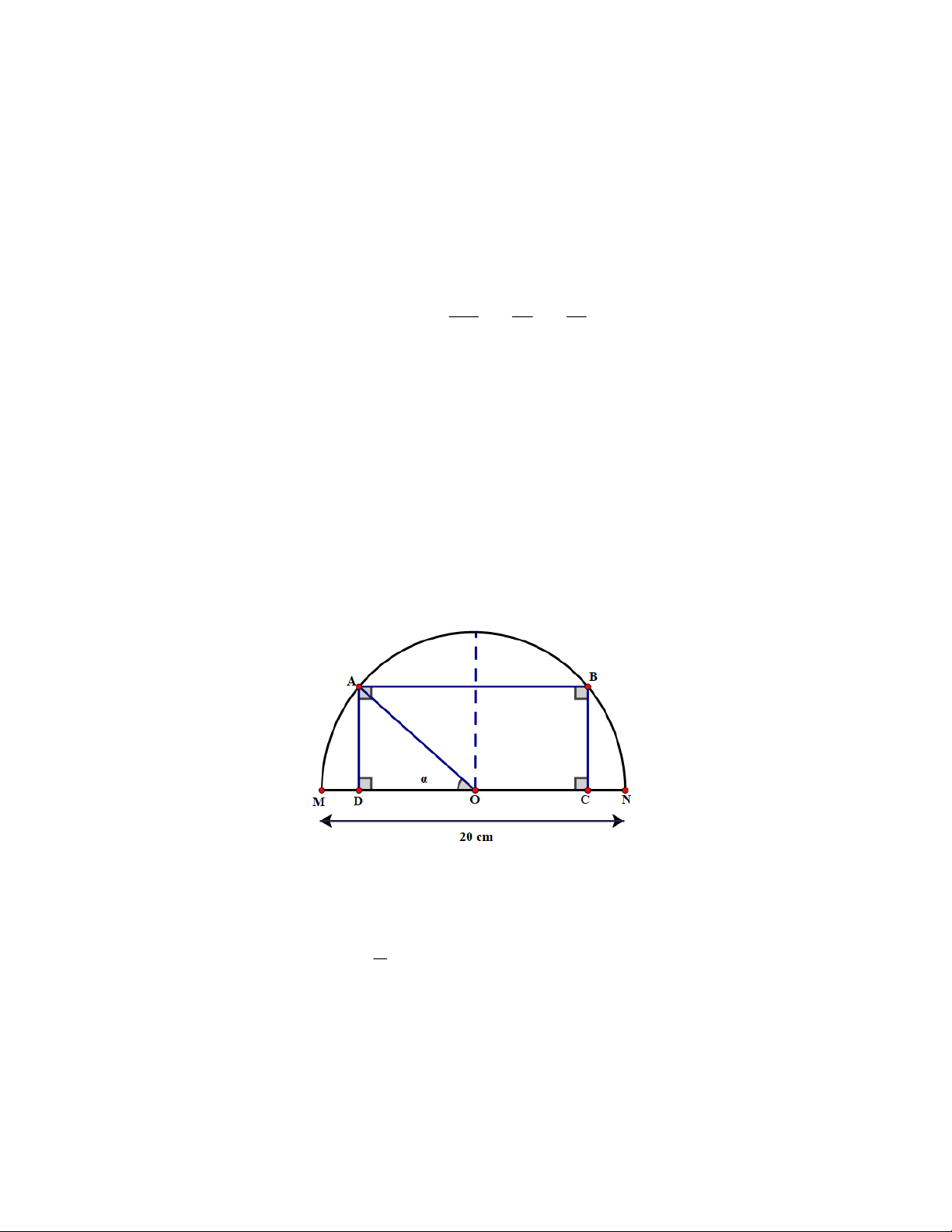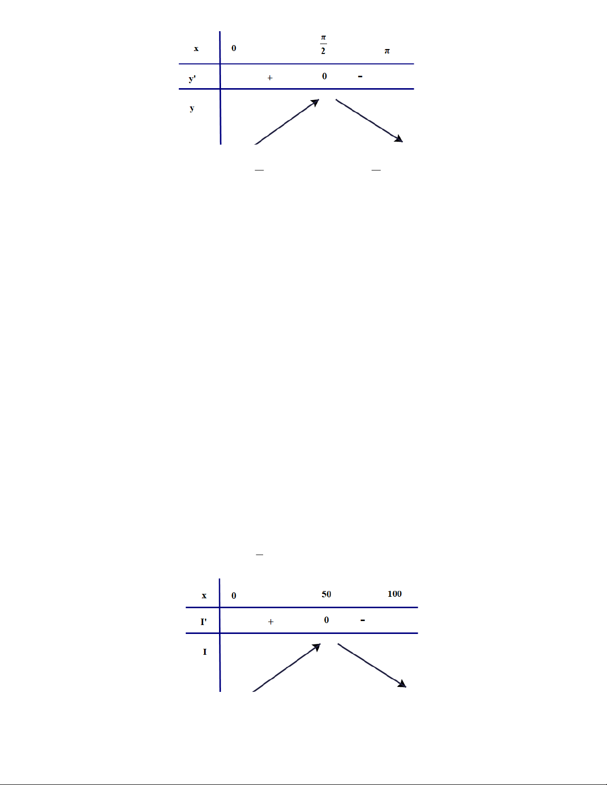 Diện tích của hình chữ nhật là y = 200sin cos = 100sin 2 .