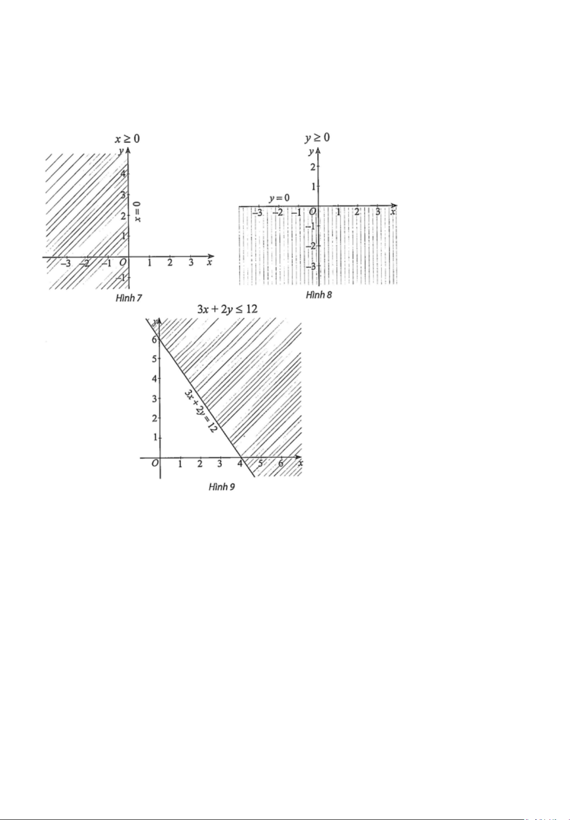 Biểu diễn miền nghiệm của từng bất phương trình đó trên mặt phẳng toạ độ Oxy :