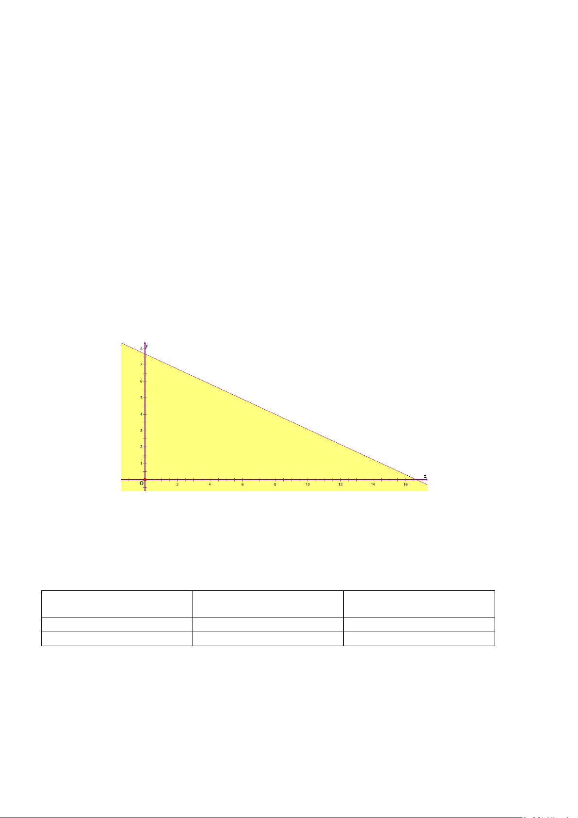 => Miền nghiệm là nửa mặt phẳng bờ là đường thẳng 4x + 5y = 3250 và chứa gốc tọa độ và (x;y)