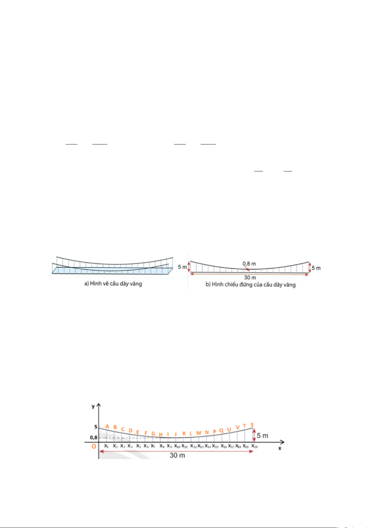Câu 14. Chiếc cầu dây văng một nhịp được thiết kế hai bên thành cầu có dạng parabol và được cố định