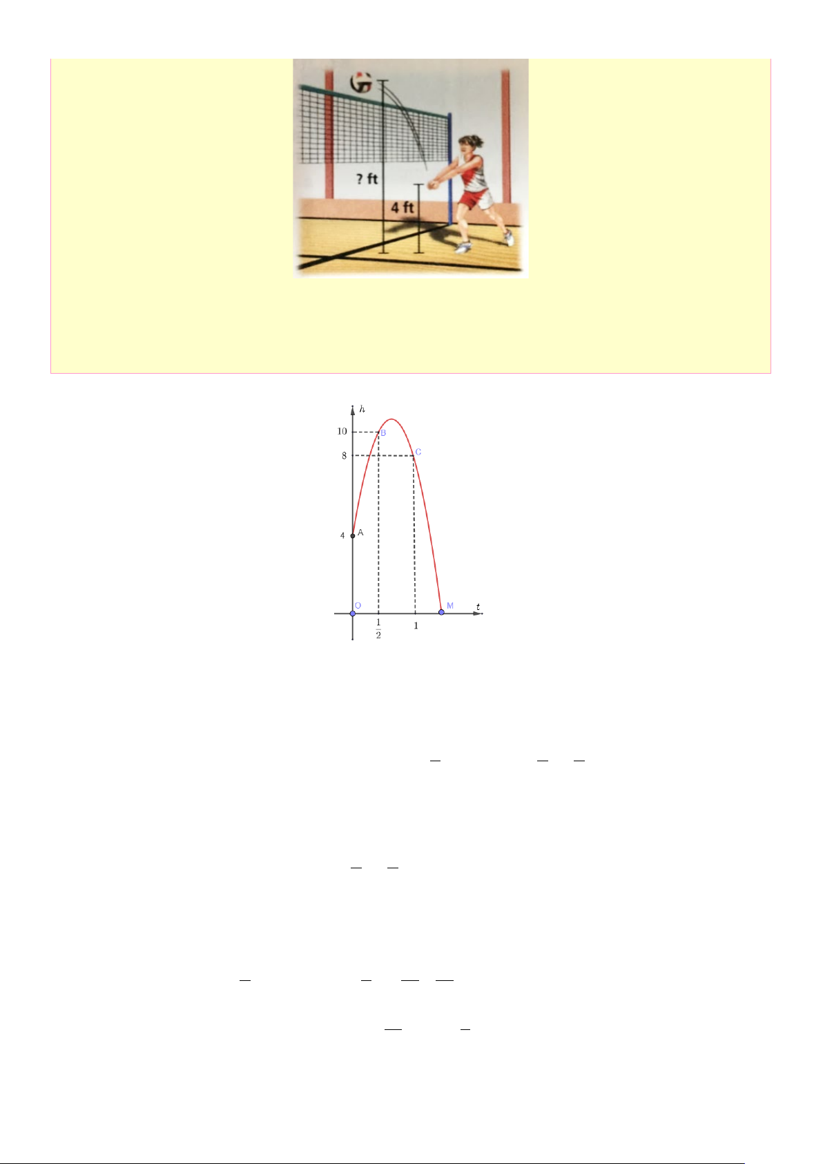 Câu 1: Một vận động viên bóng chuyền đánh một quả bóng lên với vị trí ban đầu từ độ cao 4 ft