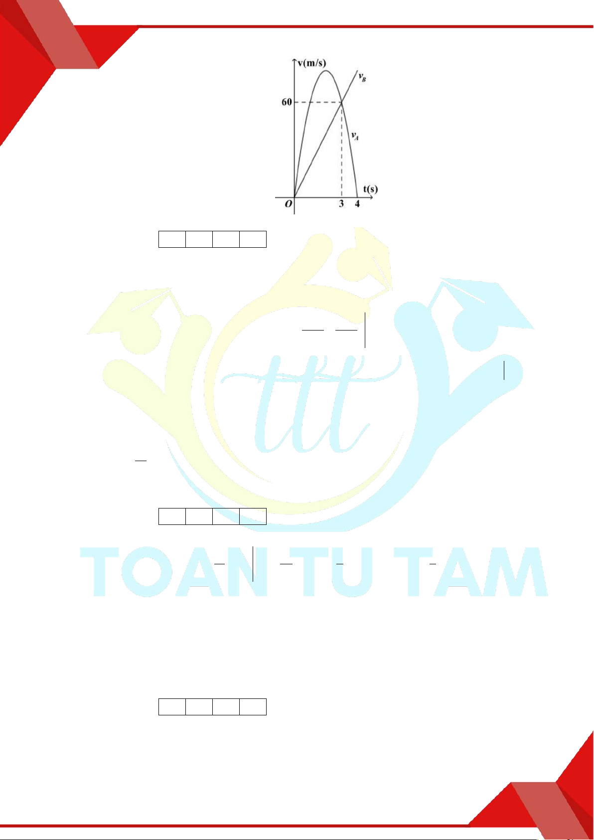 với vận tốc v 12  4t m/s . Tính khoảng cách (đơn vị mét) hai xe khi đã dừng hẳn.  2