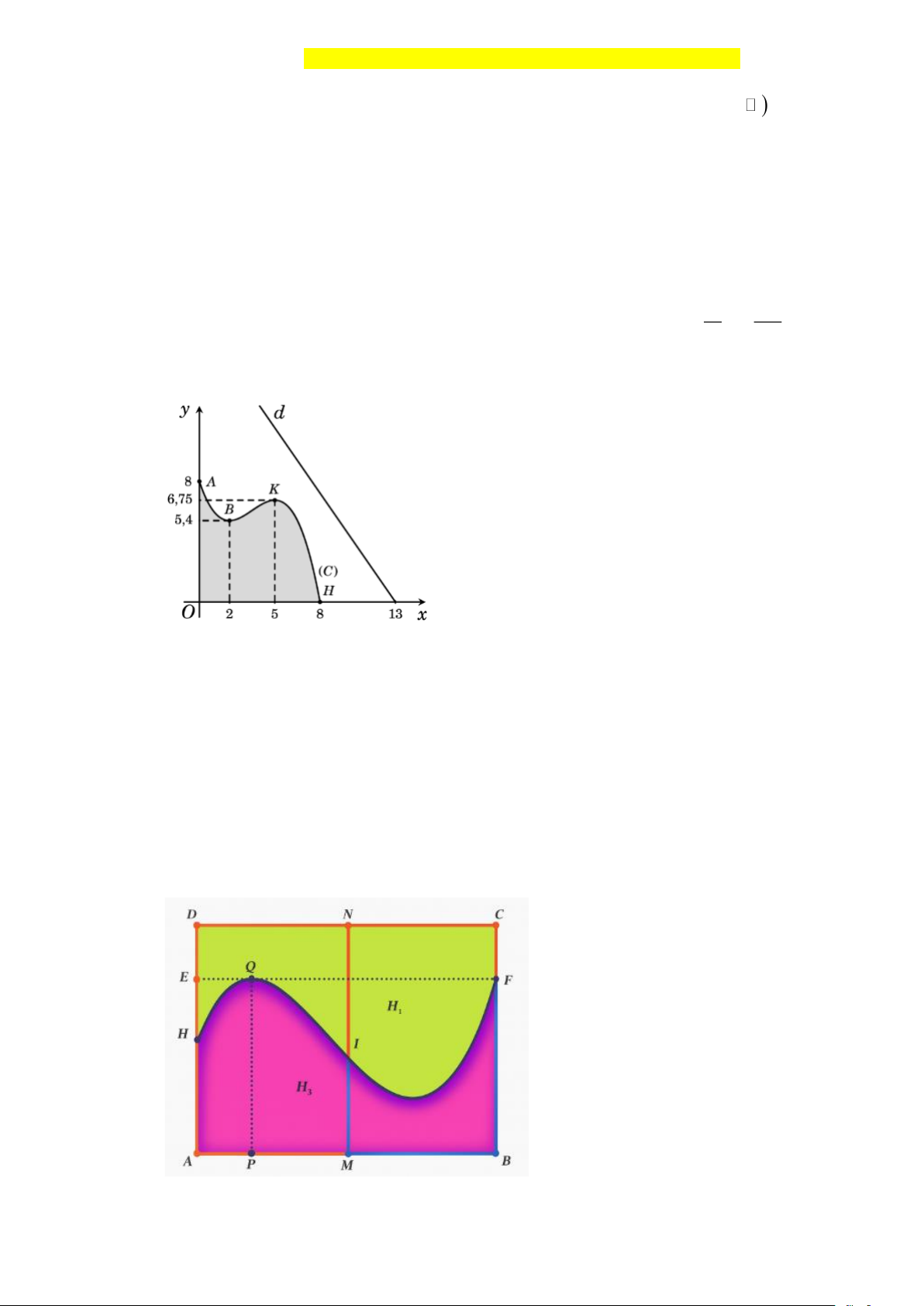 (như hình vẽ bên), nó được giới hạn bởi các trục tọa độ và đồ thị (C) của một hàm số bậc ba.