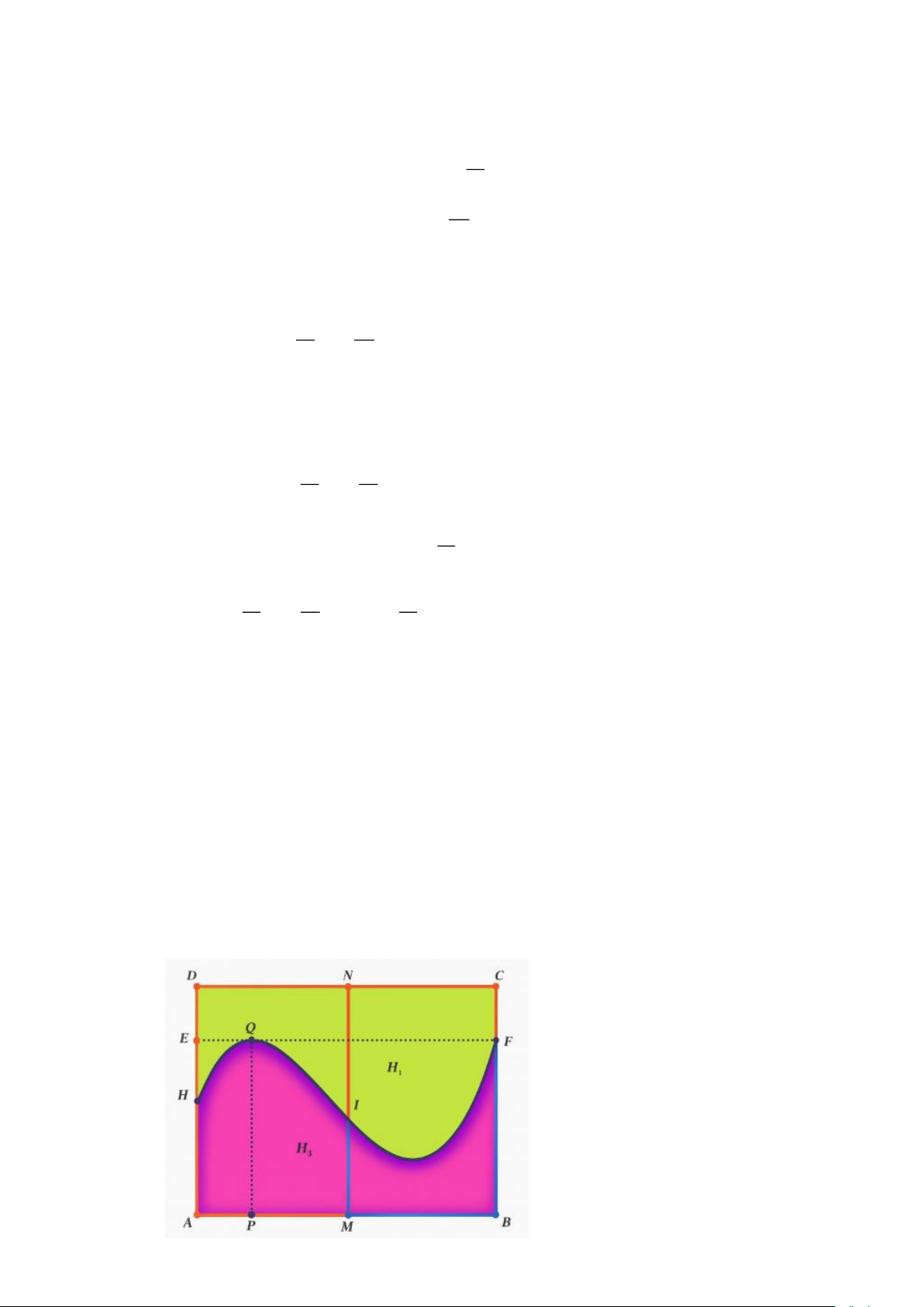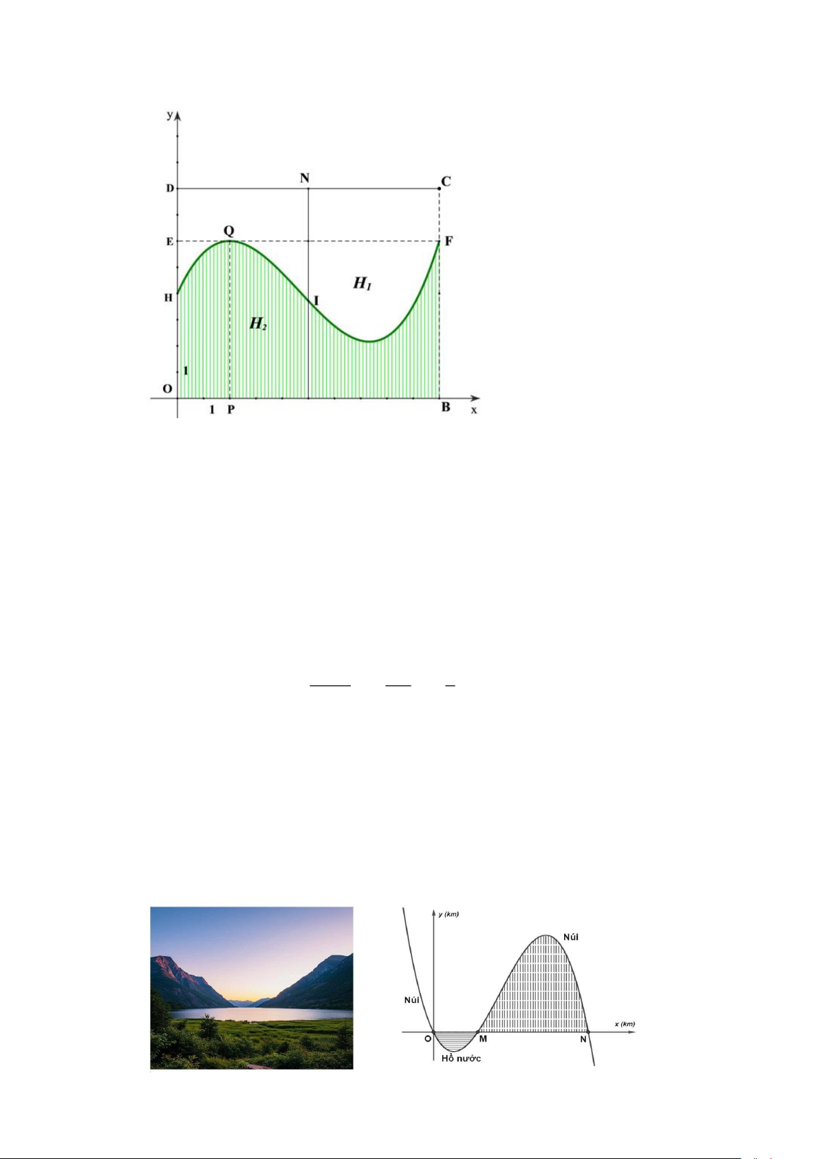 Câu 4. Lát cắt của một vùng đất được mô hình hóa bởi hàm bậc ba y = f (x) có đồ thị như hình vẽ