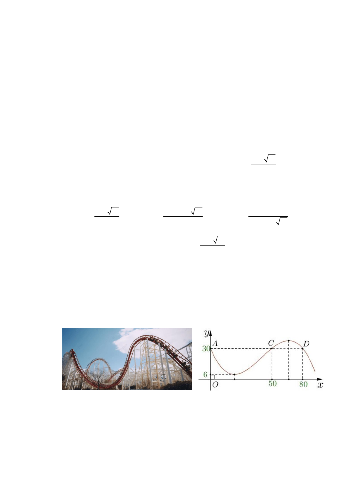 điểm C, D đồng thời đạt độ cao nhỏ nhất so với mặt đất là 6m . Độ cao lớn nhất mà tàu lượn
