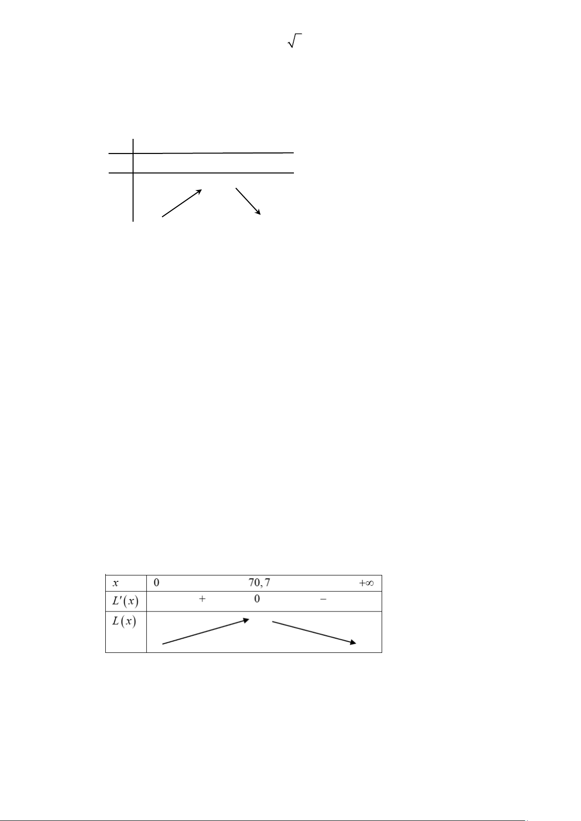− ,009x + 67,5x −100 , x [0;90] Ta có: 2 f '(x) = 0 − ,027x + 67,5 . x = 50