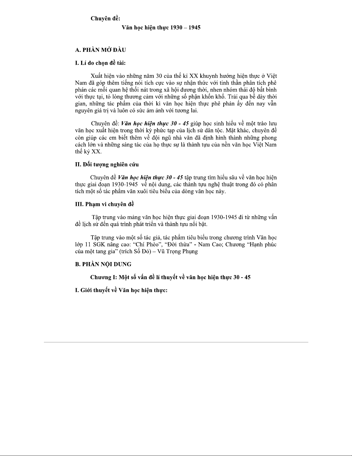 Chuyên đề VĂN HỌC HIỆN THỰC 1930-1945: Nội Dung và Thành Tựu
