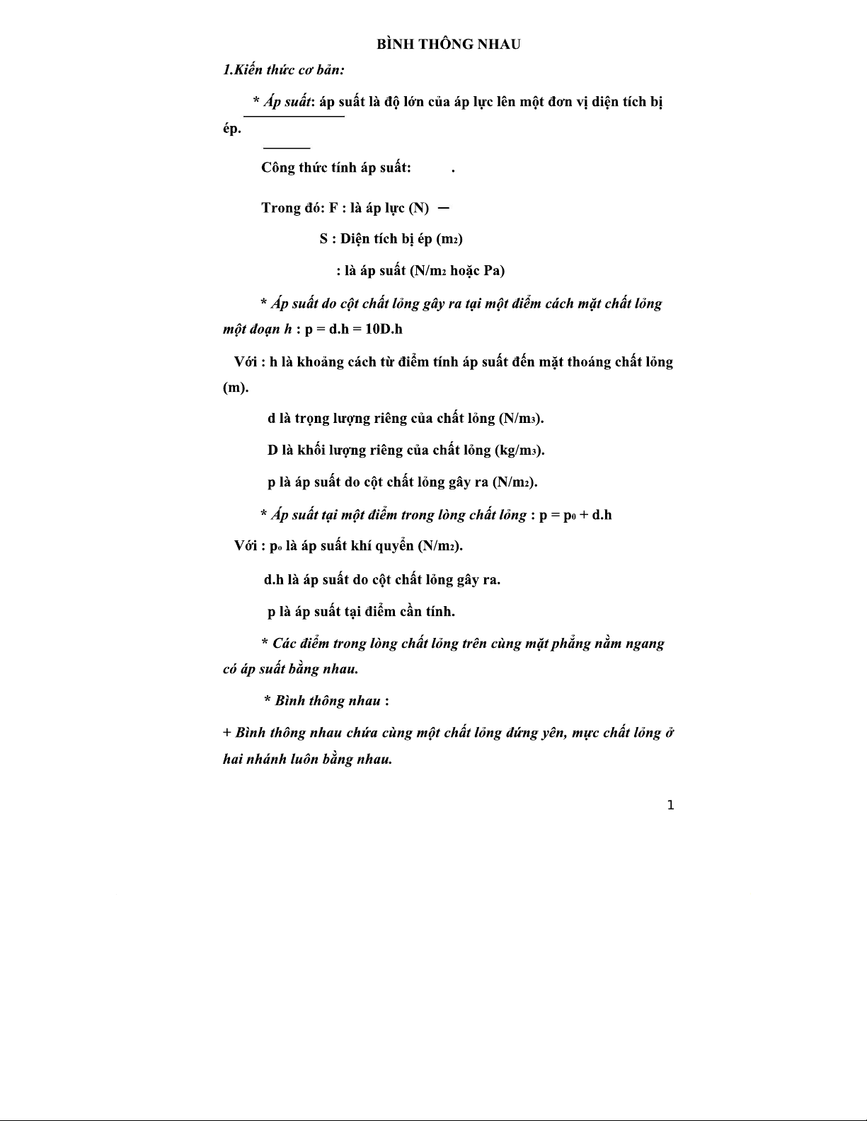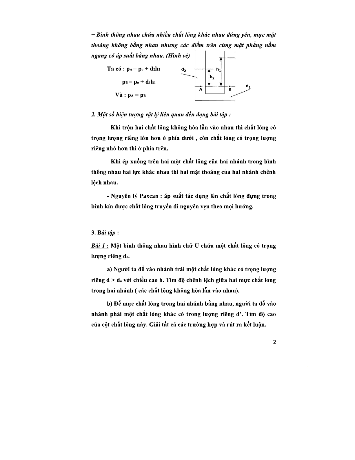 Chuyên Đề Về Bình Thông Nhau - Cơ Sở Lý Thuyết và Bài Tập Vật Lý