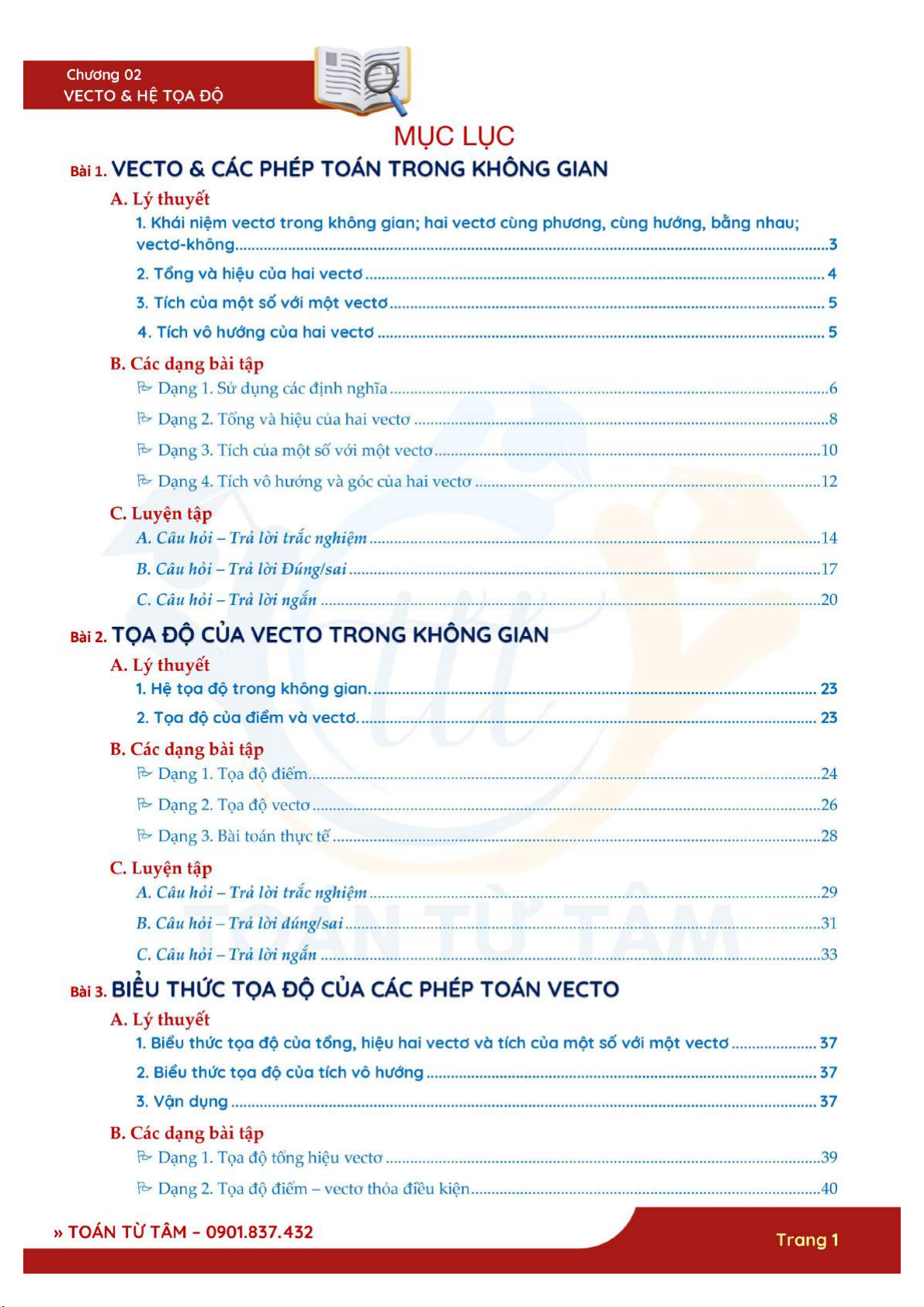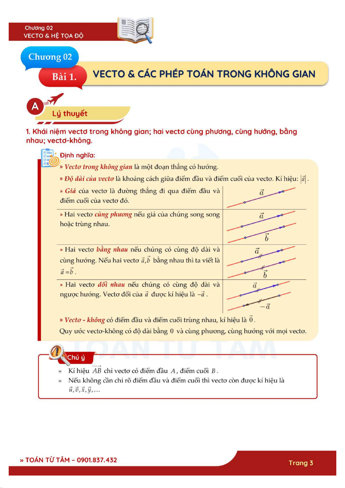 Chuyên đề Vecto hệ tọa độ trong không gian môn Toán 12