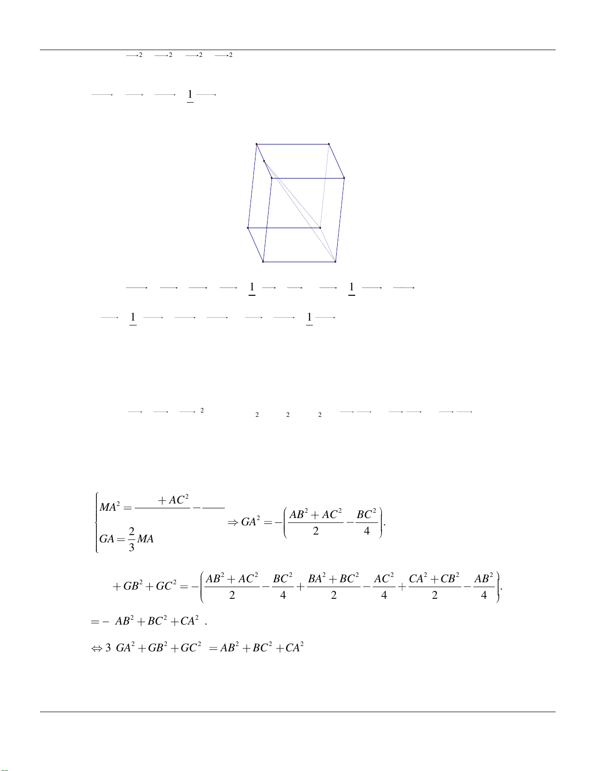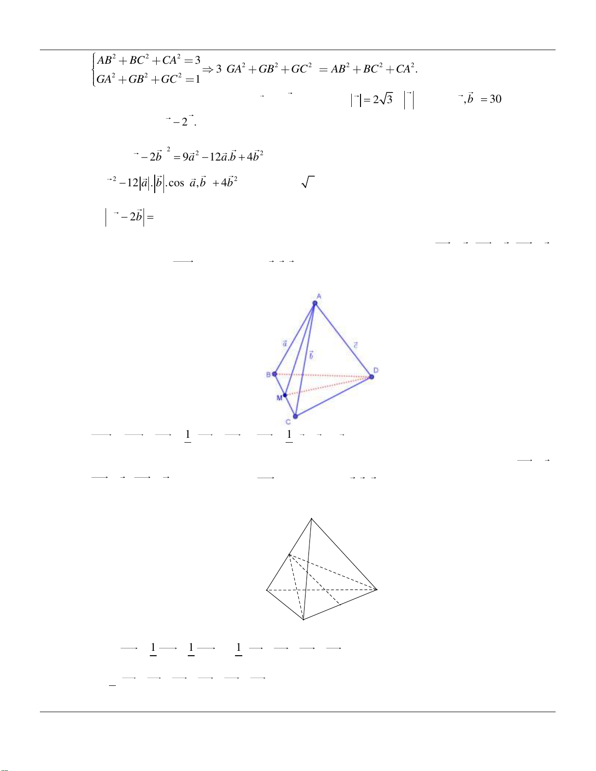 Chuyên đề VECTO TRONG KHÔNG GIAN Luyện thi THPT 2025 2 2 2 AB BC CA 3 2 2 2 2 2 2 3 GA GB GC AB BC CA . 2 2 2 GA GB GC 1 Câu 7: